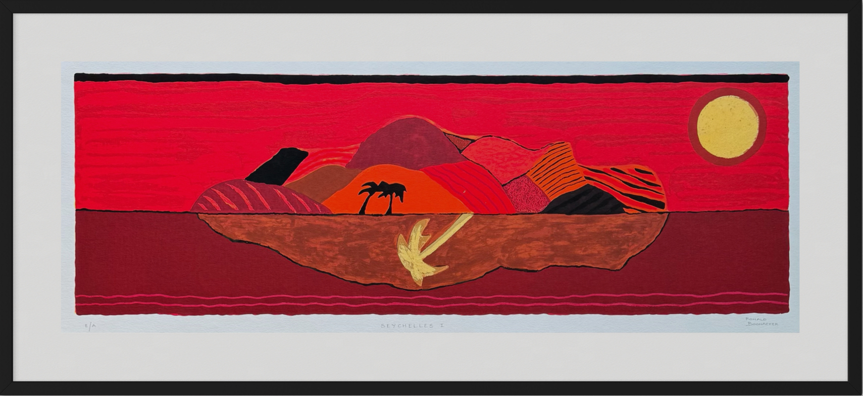 Da wir unsere Sammlung nun hauptsächlich auf die Malerei konzentrieren werden, bieten wir die letzten Exemplare der Siebdrucke von Ronald Boonacker zu einem sehr attraktiven Preis an. Dieser Siebdruck ist in sehr gutem Zustand und wurde in einer kleinen Auflage von 125 Exemplaren hergestellt. Der Siebdruck wird mit einem Echtheitszertifikat geliefert. Eine Besonderheit ist, dass Ronald Blattgold in das Kunstwerk eingearbeitet hat. Das Bild hat eine Größe von 30 x 90 cm. Wenn Sie das Kunstwerk rahmen lassen, ist es ungefähr 50 x 110 cm groß.