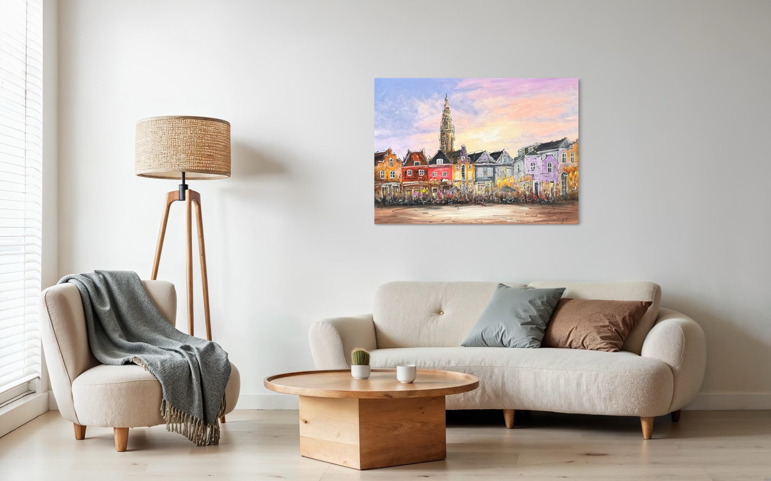 Schönes und großes Gemälde von einem der schönsten Plätze in Amersfoort. Eine freie Interpretation von dem talentierten Caspar van Houten. Dieses einzigartige Kunstwerk mit einer quadratischen Größe von 100 x 140 cm ist auf hochwertigem Leinen gemalt. Die Seiten sind für einen sauberen, nahtlosen Look entlang gemalt. Dank des Aufhängesystems lässt sich das Gemälde im Handumdrehen an Ihrer Wand aufhängen. Möchten Sie eine besonders stilvolle Präsentation? Dann wählen Sie z.B. einen eleganten schwarzen Backrahmen.
