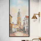 Schönes Gemälde aus der Krankeledenstraat in Amersfoort mit einer schönen Aussicht auf den Turm Onze Lieve Vrouwentoren. Eine freie Interpretation von dem talentierten Caspar van Houten. Dieses einzigartige Kunstwerk im Format 60 x 120 cm ist auf hochwertigem Leinen gemalt. Die Seiten sind für einen sauberen, nahtlosen Look entlang gemalt. Dank des Aufhängesystems lässt sich das Gemälde im Handumdrehen an Ihrer Wand aufhängen. Möchten Sie eine besonders stilvolle Präsentation? Dann entscheiden Sie sich zum Beispiel für einen eleganten schwarzen Bilderrahmen; lassen Sie sich einfach beraten. In der Galerie finden Sie eine große Auswahl an (Bilder-)Rahmen.