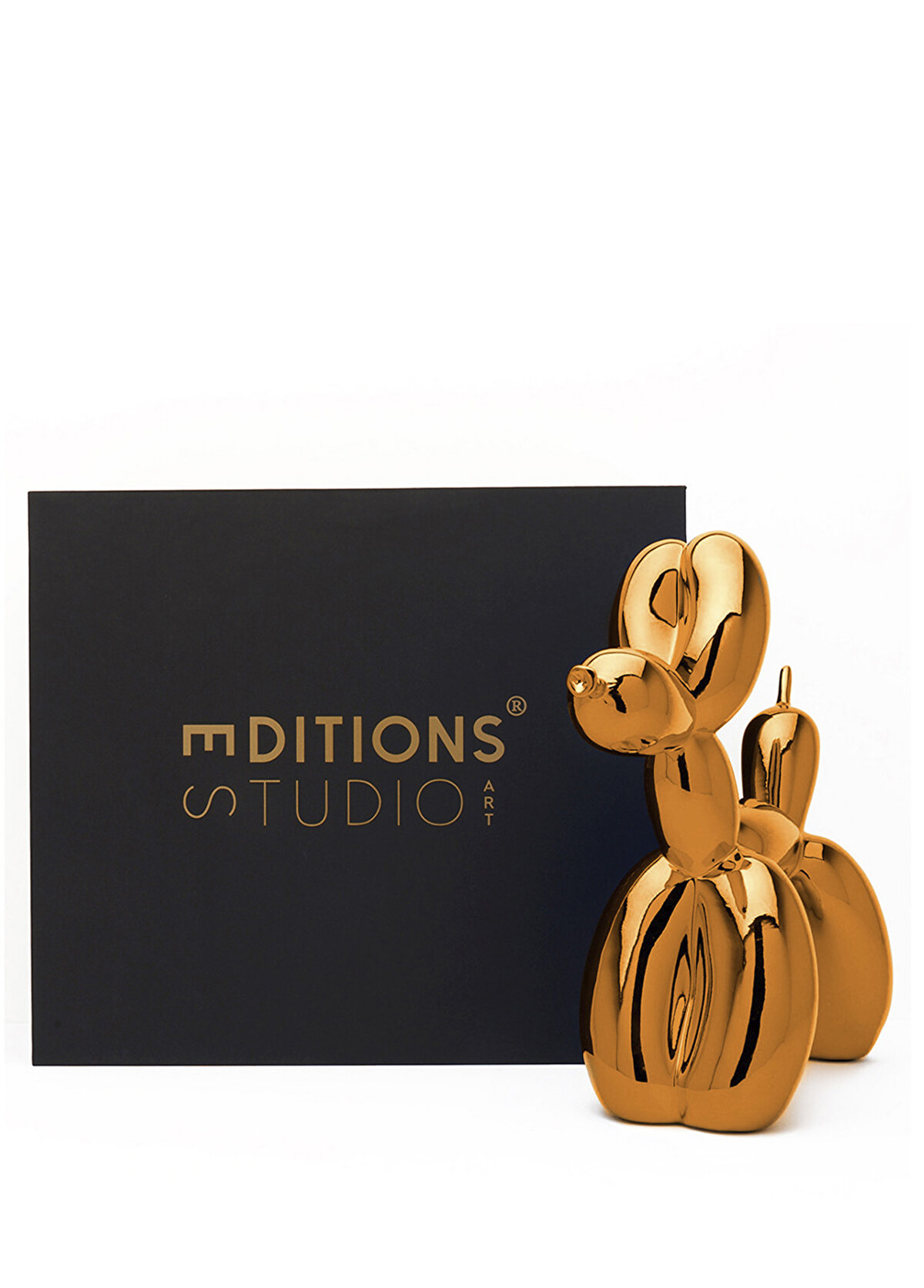 Der Balloon Dog Orange Gold ist eine exklusive Kreation von Editions Studio, einem renommierten Namen in der Kunstwelt. Mit einer limitierten Auflage von nur 500 Stück bietet diese Skulptur nicht nur ein visuelles Spektakel, sondern ist auch eine wertvolle Ergänzung für jede Kunstsammlung.