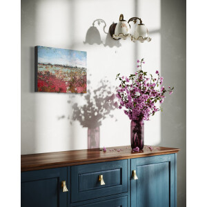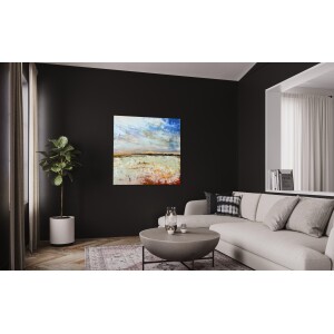 Die reichlich aufgetragenen Farben und Pigmente führen zu einem reichhaltig geschichteten Gemälde mit Tiefe und Textur, ähnlich wie man einen guten Wein mit der Zeit zu schätzen weiß. Obwohl das Werk eindeutig modern ist, hat es eine klassische Ausstrahlung, auch dank des schönen "holländischen Himmels".