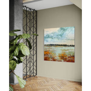 Die reichlich aufgetragenen Farben und Pigmente führen zu einem reichhaltig geschichteten Gemälde mit Tiefe und Textur, ähnlich wie man einen guten Wein mit der Zeit zu schätzen weiß. Obwohl das Werk eindeutig modern ist, hat es eine klassische Ausstrahlung, auch dank des schönen "holländischen Himmels".