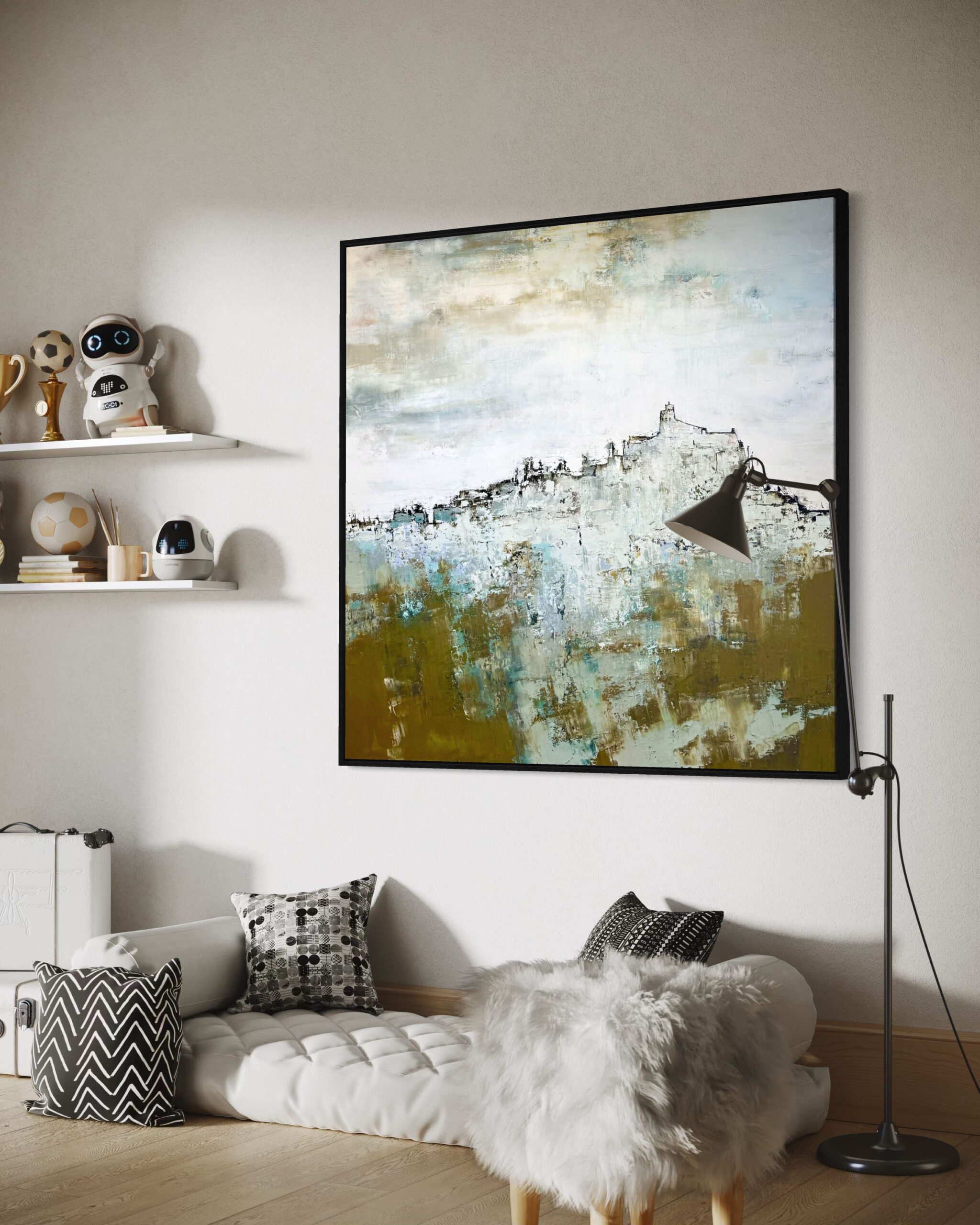 Mit diesem Kunstwerk erweckt Emiliana die intensive Atmosphäre der Landschaft zum Leben. Durch den reichhaltigen Auftrag von Farbe und Pigmenten entsteht ein Gemälde mit beeindruckender Tiefe und Textur. Dieses Werk strahlt einen klassischen Charme aus, auch dank des schönen ‚holländischen Himmels‘, und ist gleichzeitig unverkennbar modern.