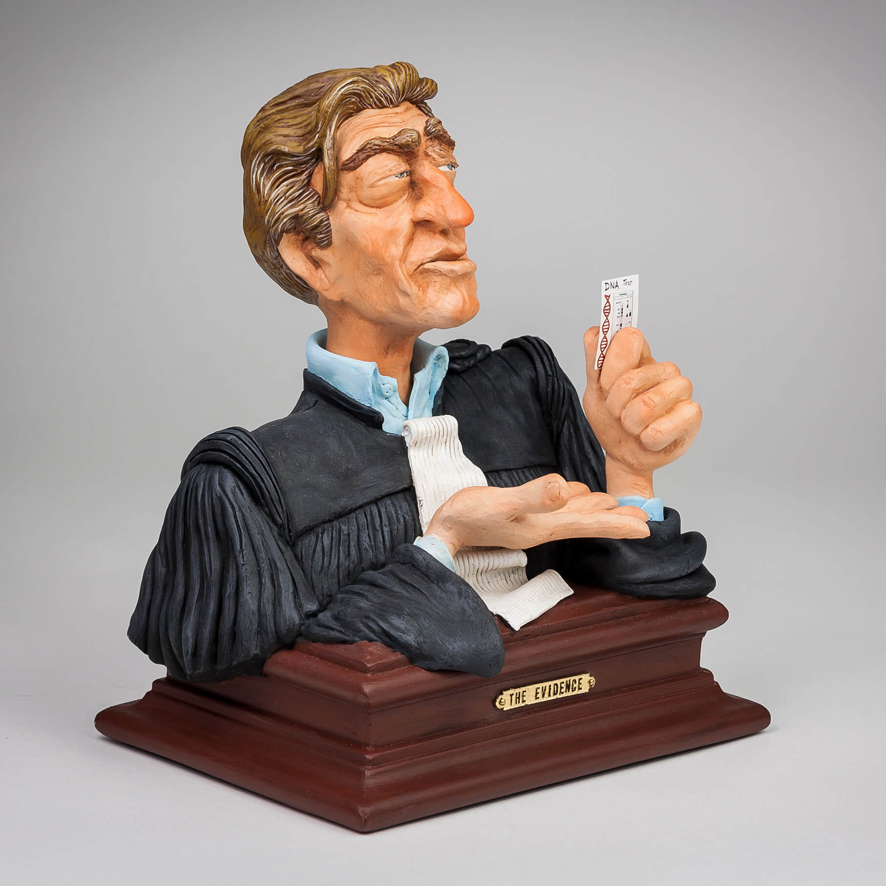 Die Büste "The Evidence (Lawyer Bust)" fängt das Drama und die Spannung eines Gerichtssaals perfekt ein. Als Hommage an den Scharfsinn und die Entschlossenheit von Anwälten ist dieses Kunstwerk ein Muss für jeden Kunstliebhaber und Juristen.