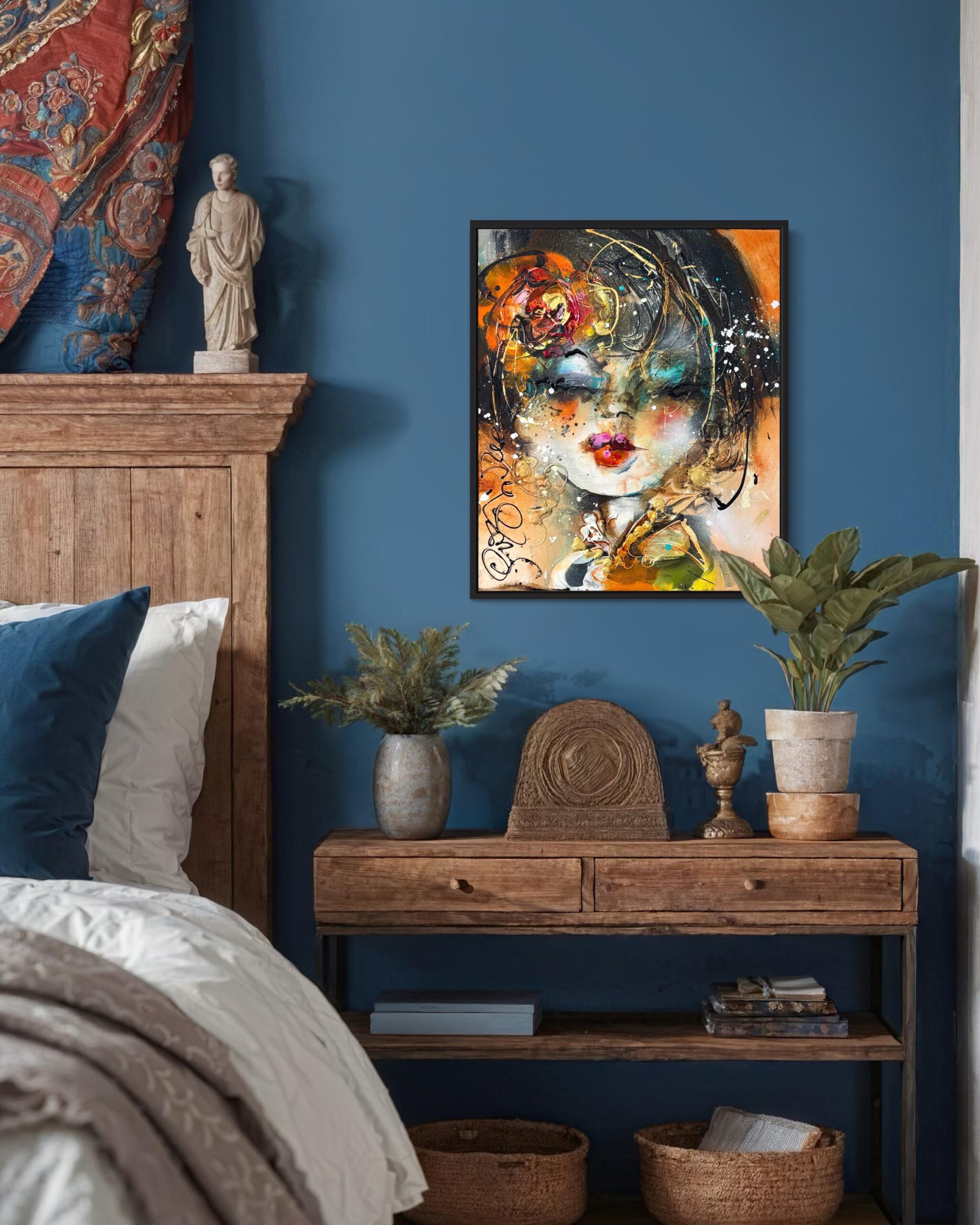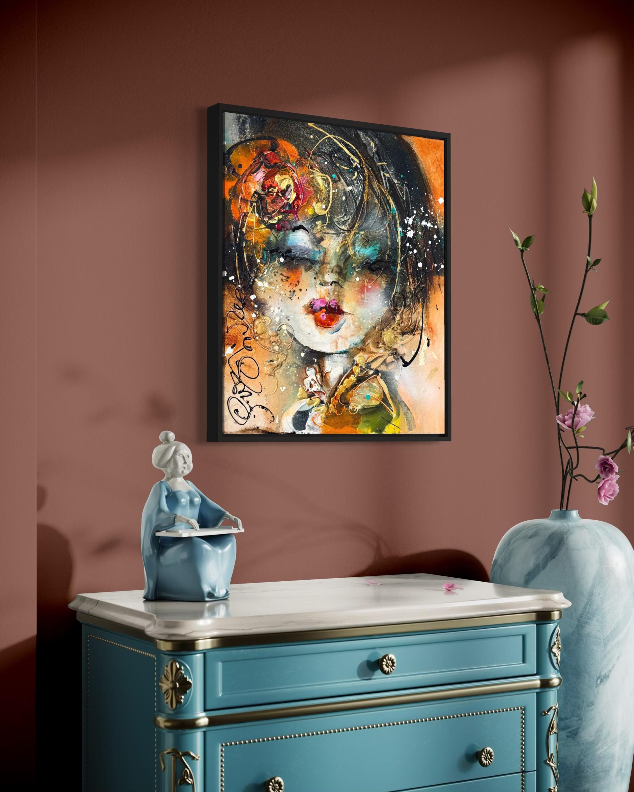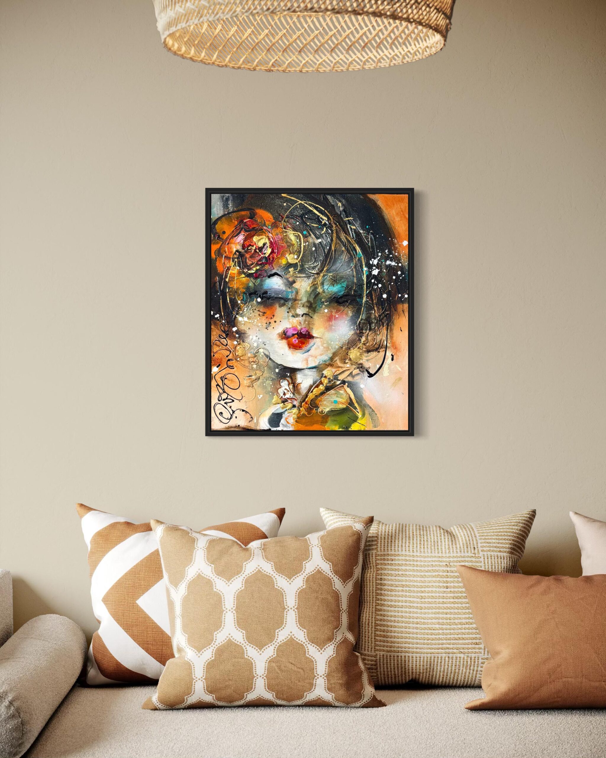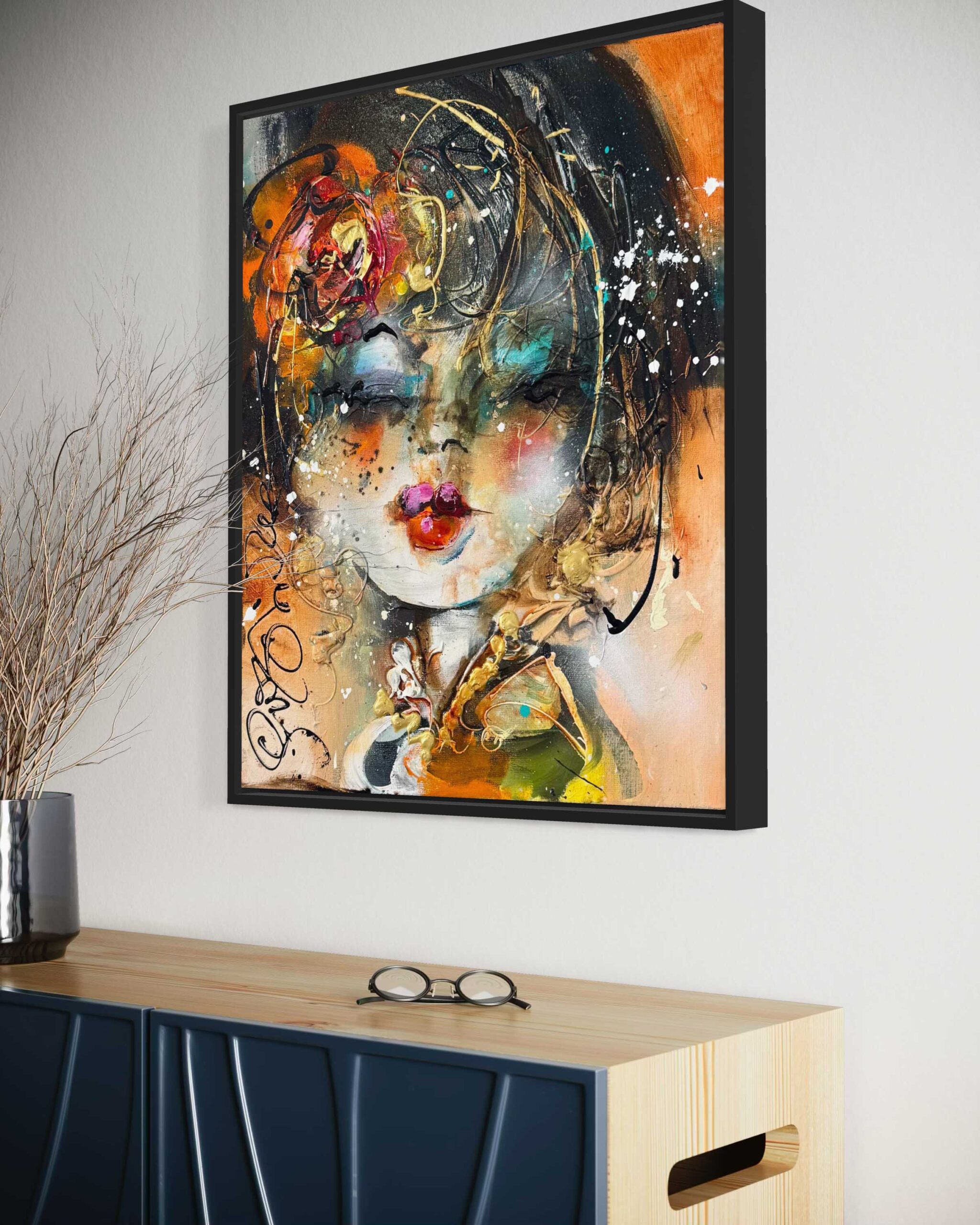 Dieses Gemälde ist an den Seiten durchgemalt und kann im Prinzip so aufgehängt werden, wie es ist. Wir sind jedoch der Meinung, dass dieses Kunstwerk einen Rahmen verdient hat, der es noch mehr zur Geltung bringt. Wir haben dieses Kunstwerk kürzlich mit einem eleganten, mattschwarzen Rahmen gerahmt. Benötigt Ihre Einrichtung ein anderes Profil oder eine andere Farbe? Lassen Sie sich in der Galerie über die Möglichkeiten der Rahmung beraten. Wir haben eine Auswahl von Hunderten von italienischen und spanischen Rahmen, die dieses Kunstwerk voll zur Geltung bringen werden!