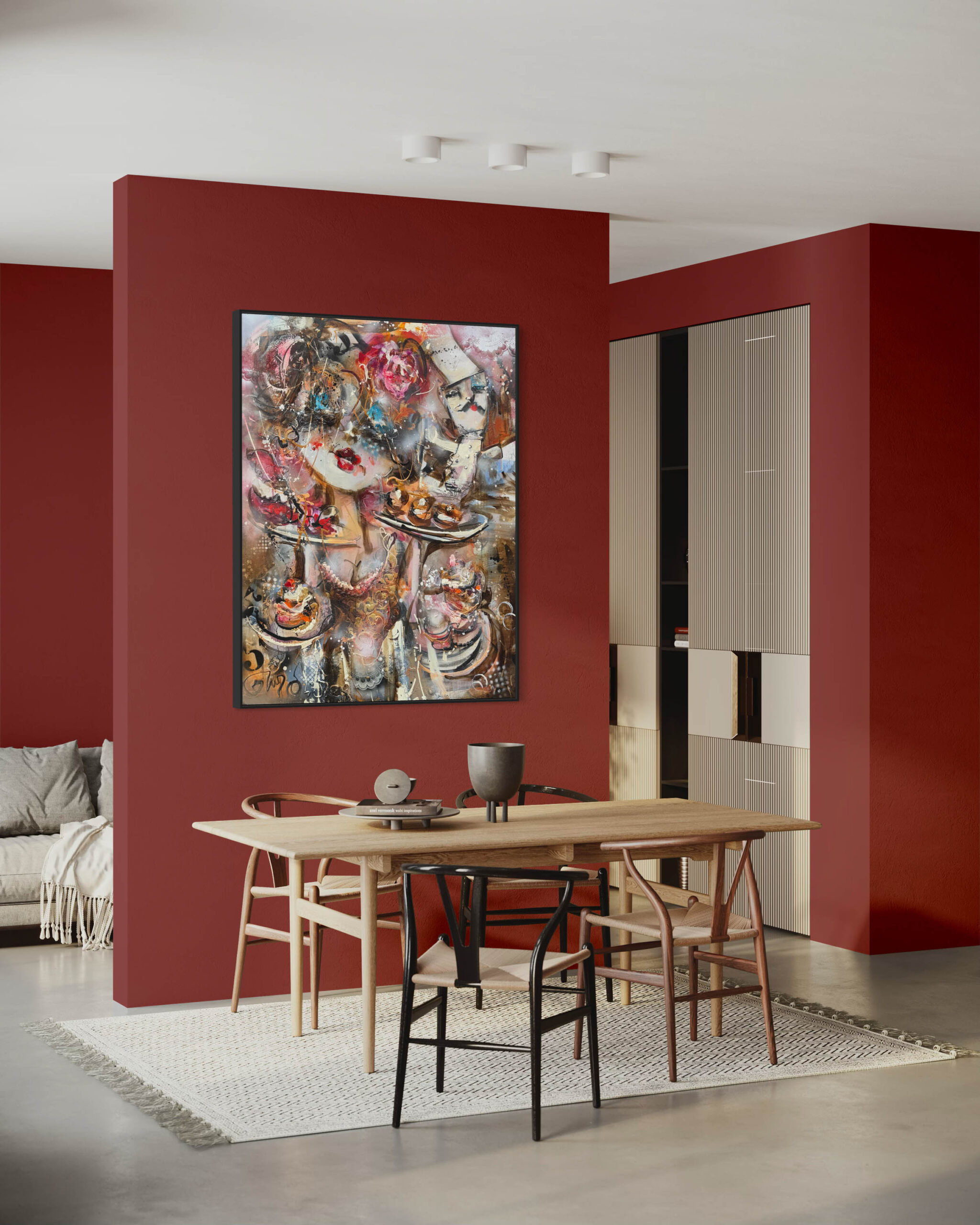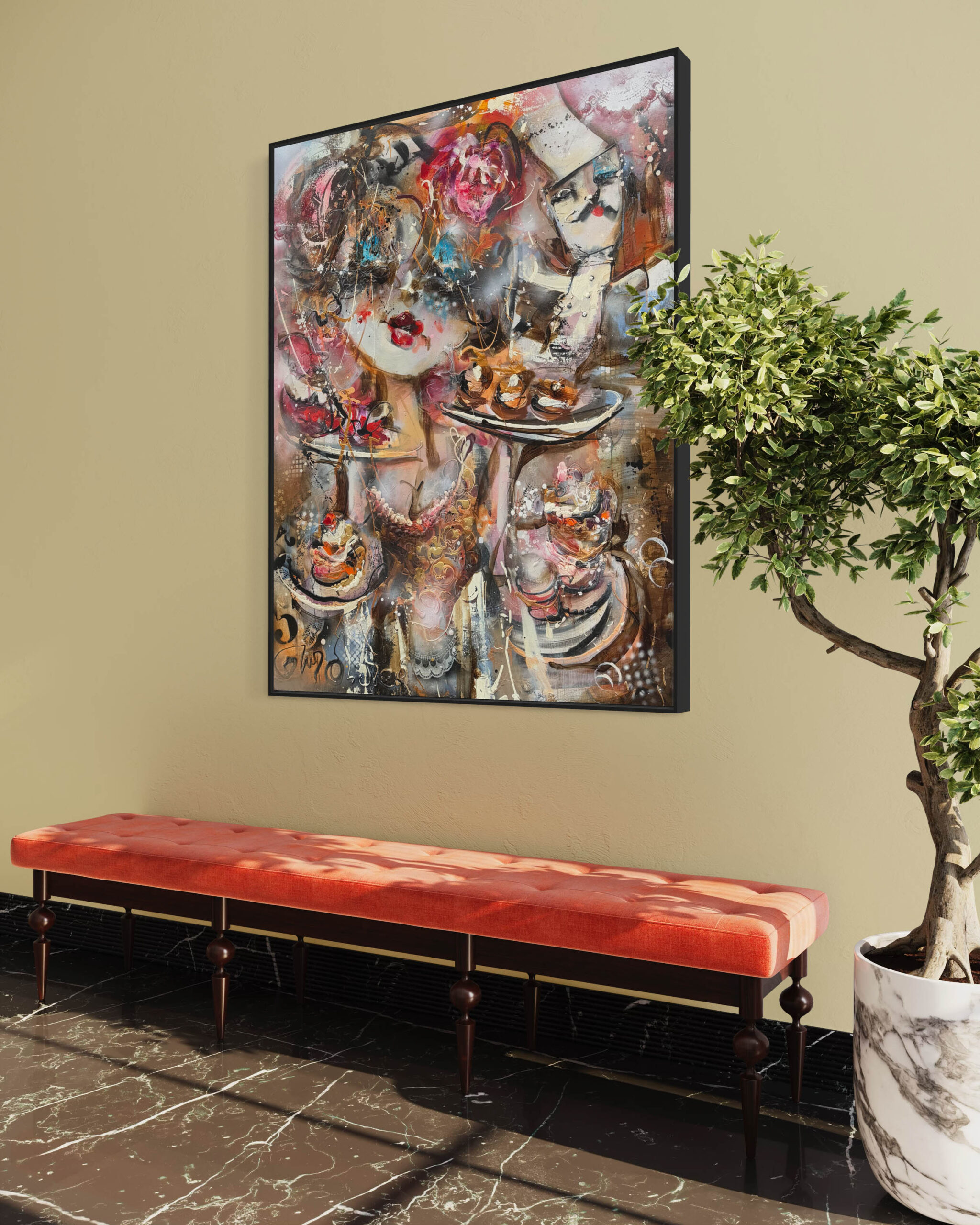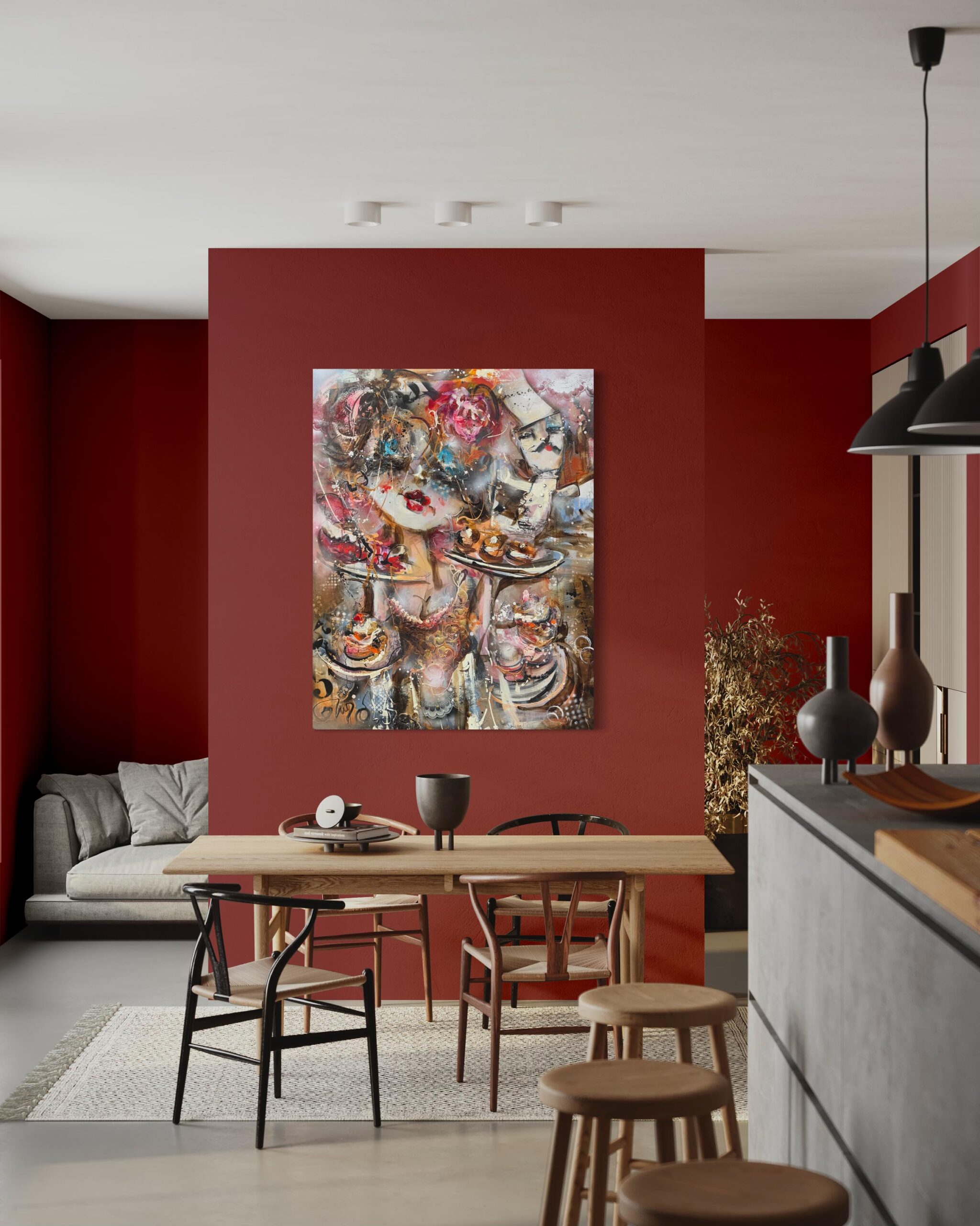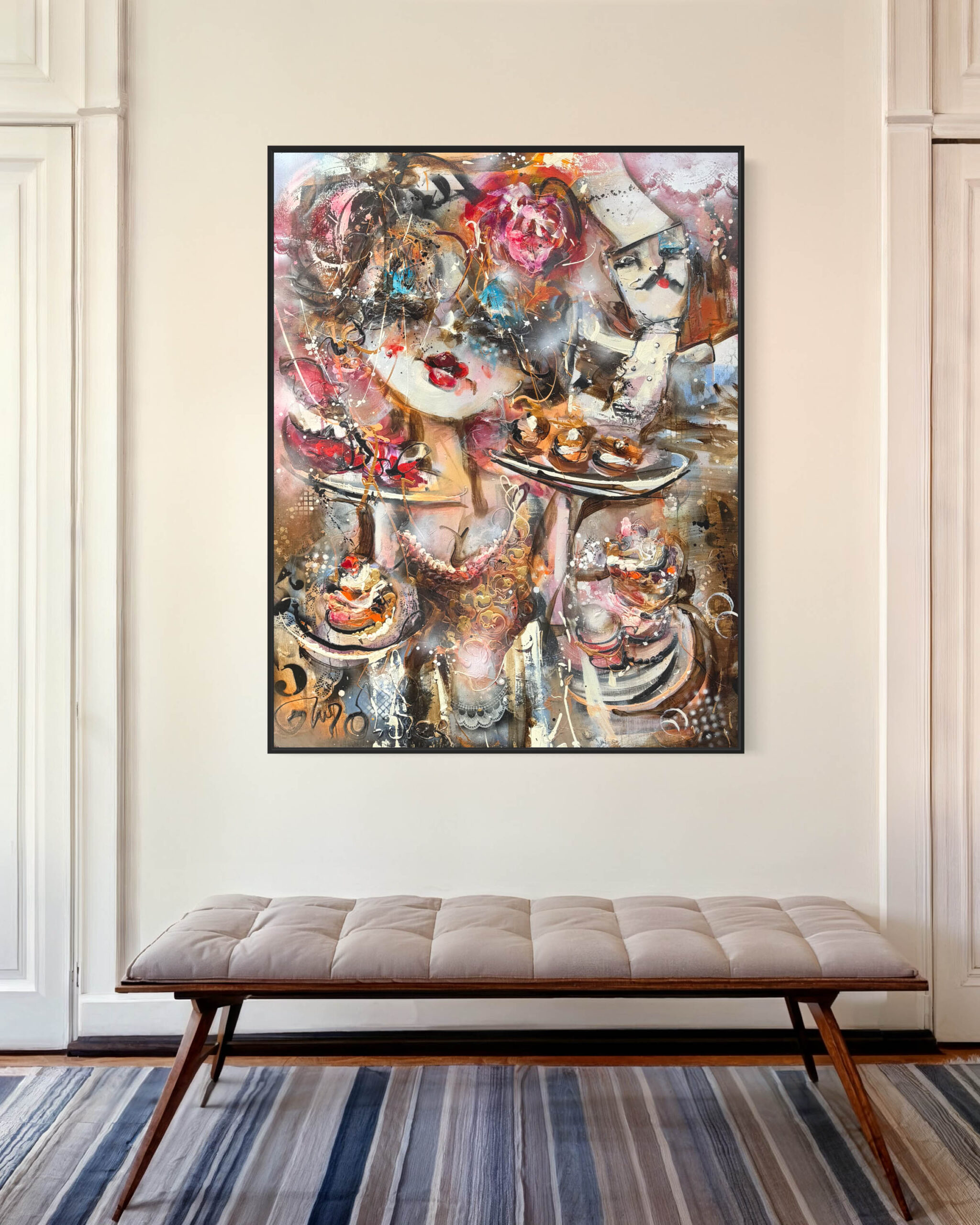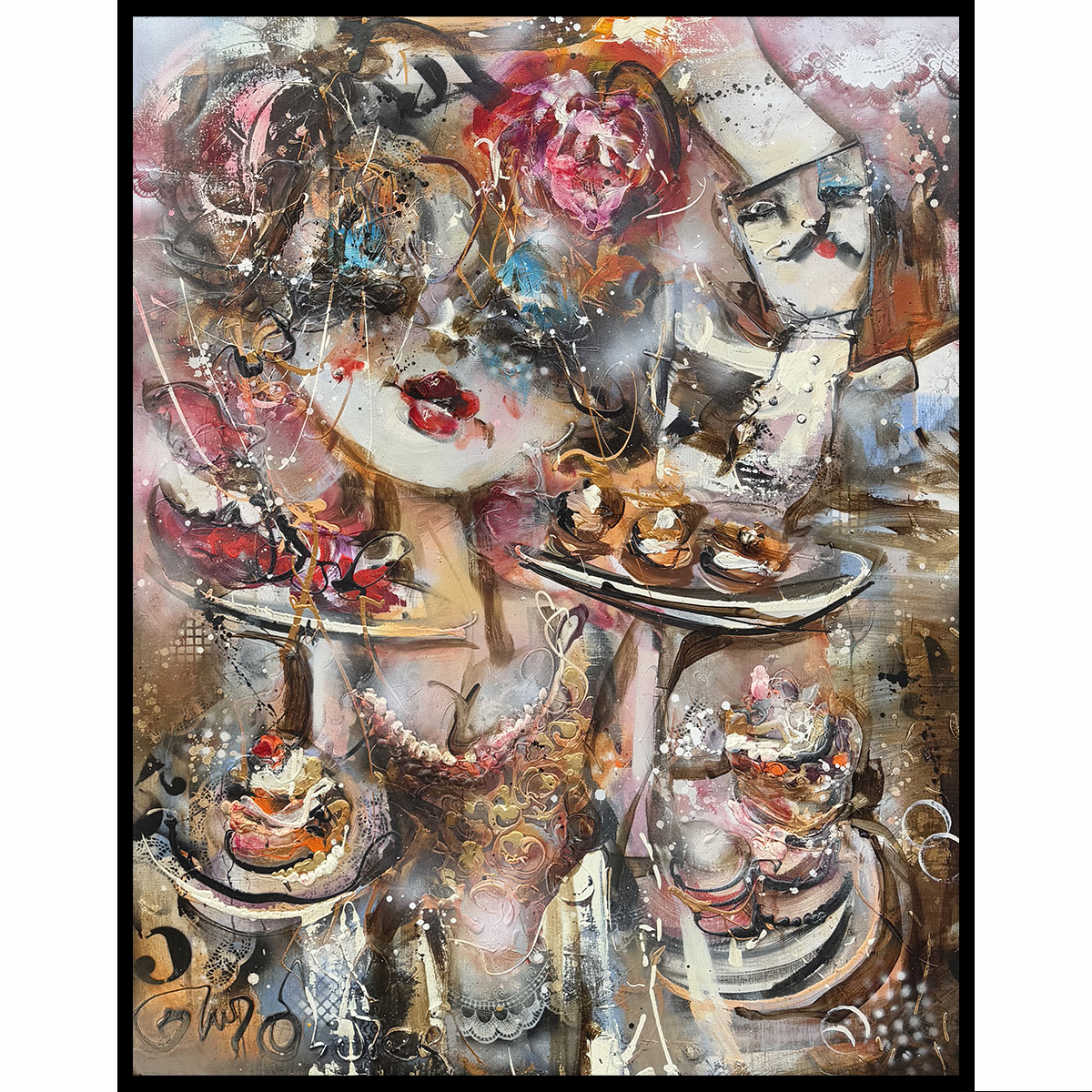 Patissere Royal ist ein sehr schönes und großes Kunstwerk von Guy Olivier. Dieses einzigartige Kunstwerk ist mit dicken Linien von Acrylfarbe auf Leinen gemalt und mit einem schönen, modernen Backrahmen versehen. Das Gemälde wird selbstverständlich mit einem Echtheitszertifikat geliefert, das seine Exklusivität und seinen Wert unterstreicht. Dieses Kunstwerk ist die ultimative Ergänzung für jedes Interieur und ein Muss für Sammler.