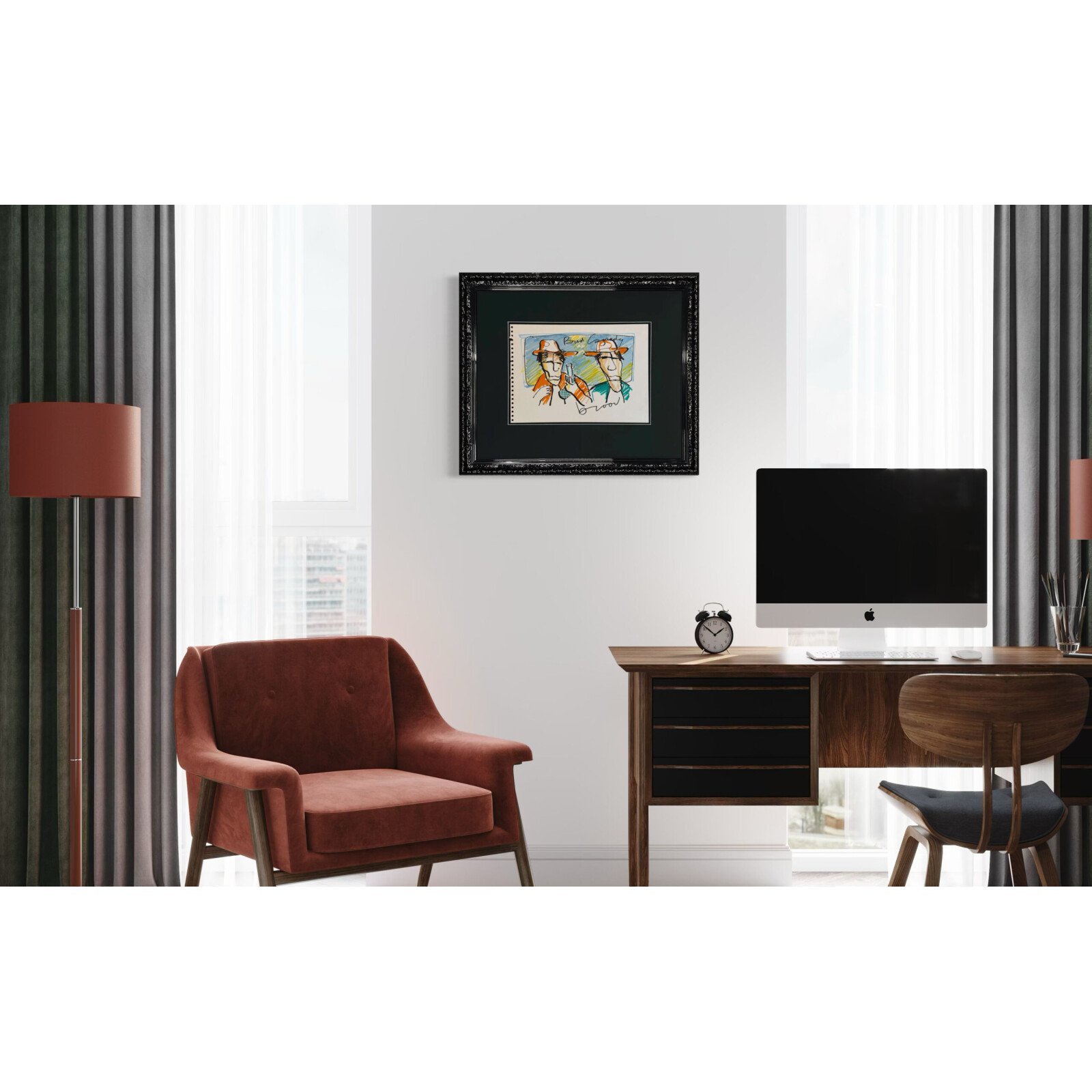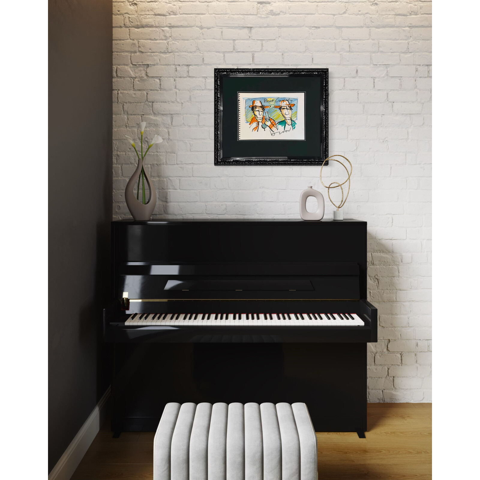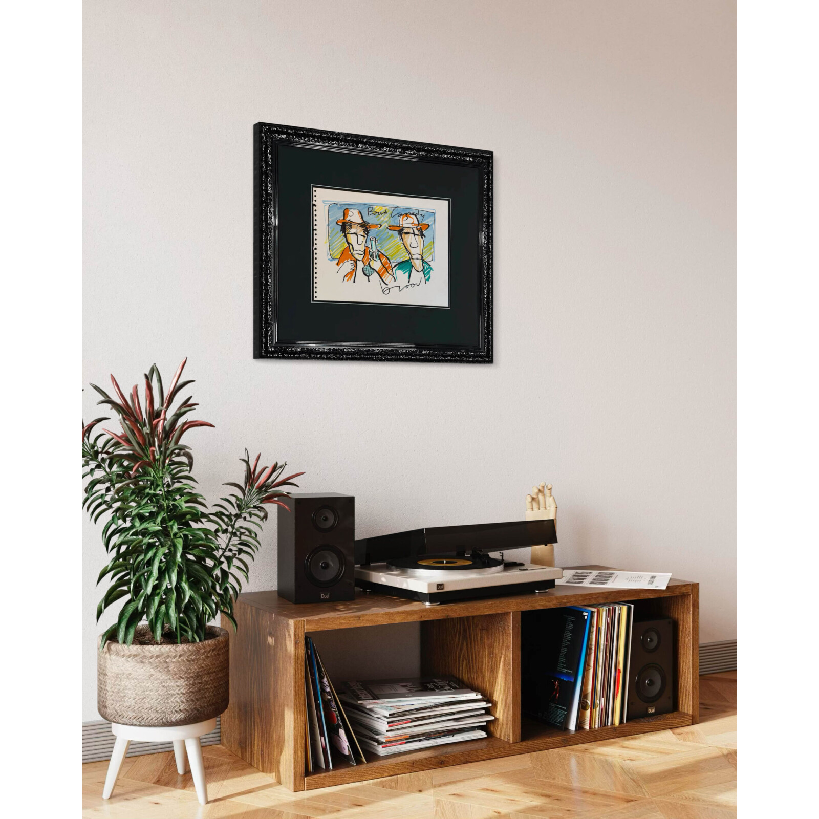 Dieses Kunstwerk verfügt über einen eleganten schwarzen Hochglanz-Ornamentrahmen mit einem säurefreien Passepartout. Die Größe von 61×72 cm beinhaltet den Rahmen. Um die Zeichnung bestmöglich zu schützen und zu bewahren, ist sie mit 99% UV-beständigem Museumsglas ausgestattet. Dadurch wird sichergestellt, dass die Farben und Details des Kunstwerkes erhalten bleiben. Würden Sie eine andere Liste bevorzugen? Kein Problem. In unserer Galerie haben wir mehr als 1.000 verschiedene Profile.
