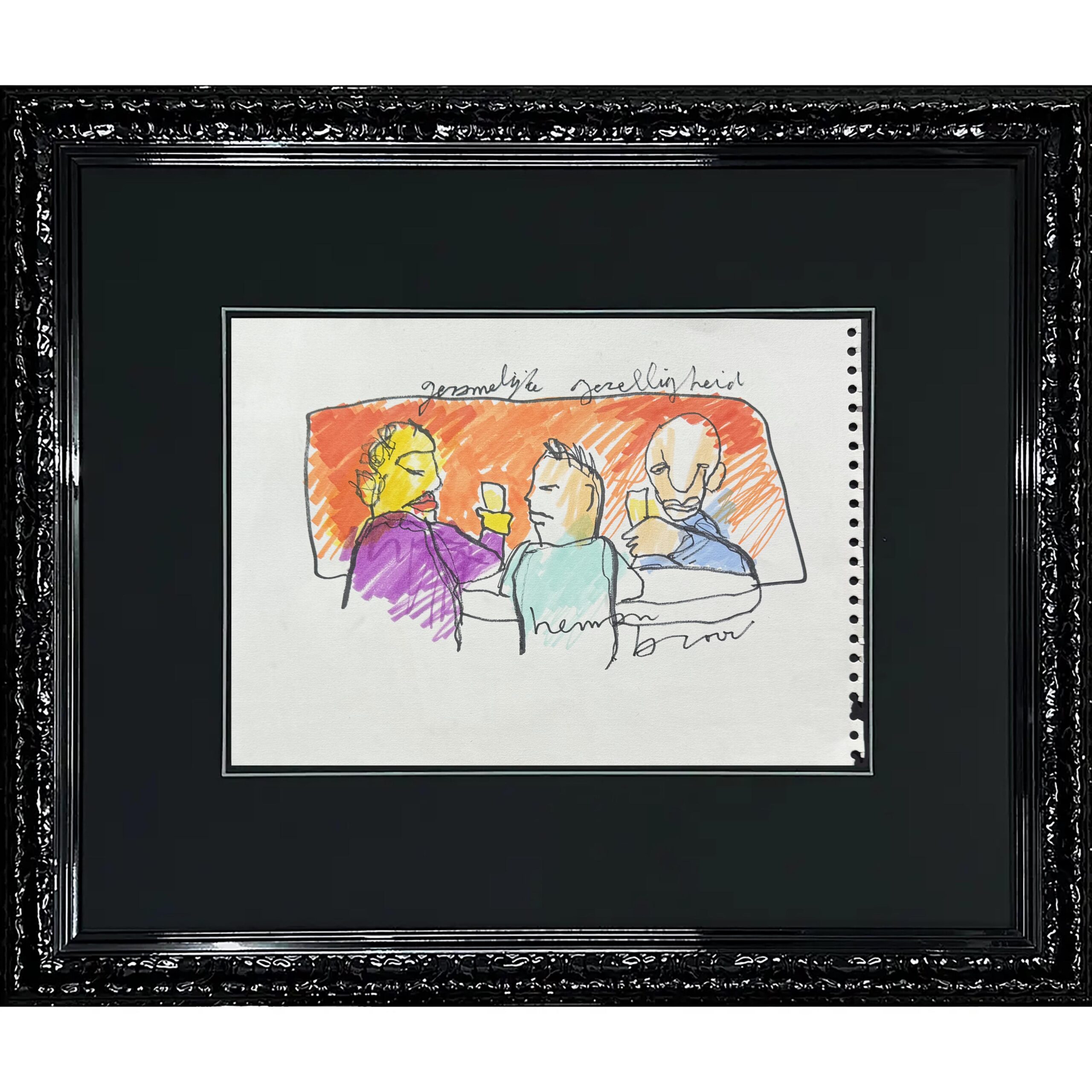„Collective Conviviality“ ist eine Originalzeichnung von Herman Brood. Im Gegensatz zu den Siebdrucken in limitierter Auflage ist dies ein einzigartiges Kunstwerk. Diese Zeichnung bietet Ihnen die seltene Gelegenheit, sich ein authentisches Stück der kreativen Welt von Brood nach Hause zu holen. Suchen Sie ein schönes Geschenk oder sind Sie selbst ein echter Herman Brood-Liebhaber? Mit „Collective Cosiness“ holen Sie sich ein einzigartiges Kunstwerk in Ihr Zuhause.