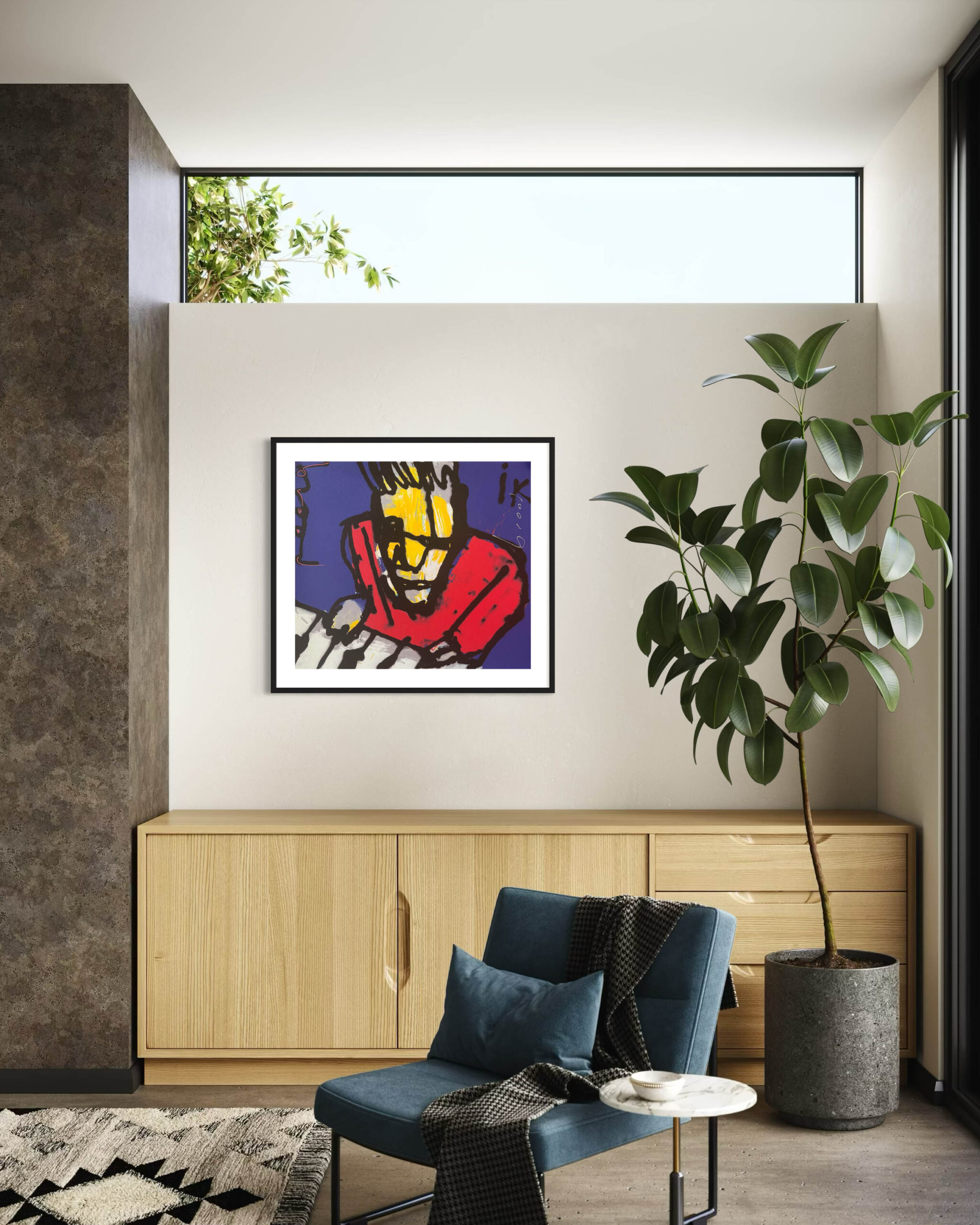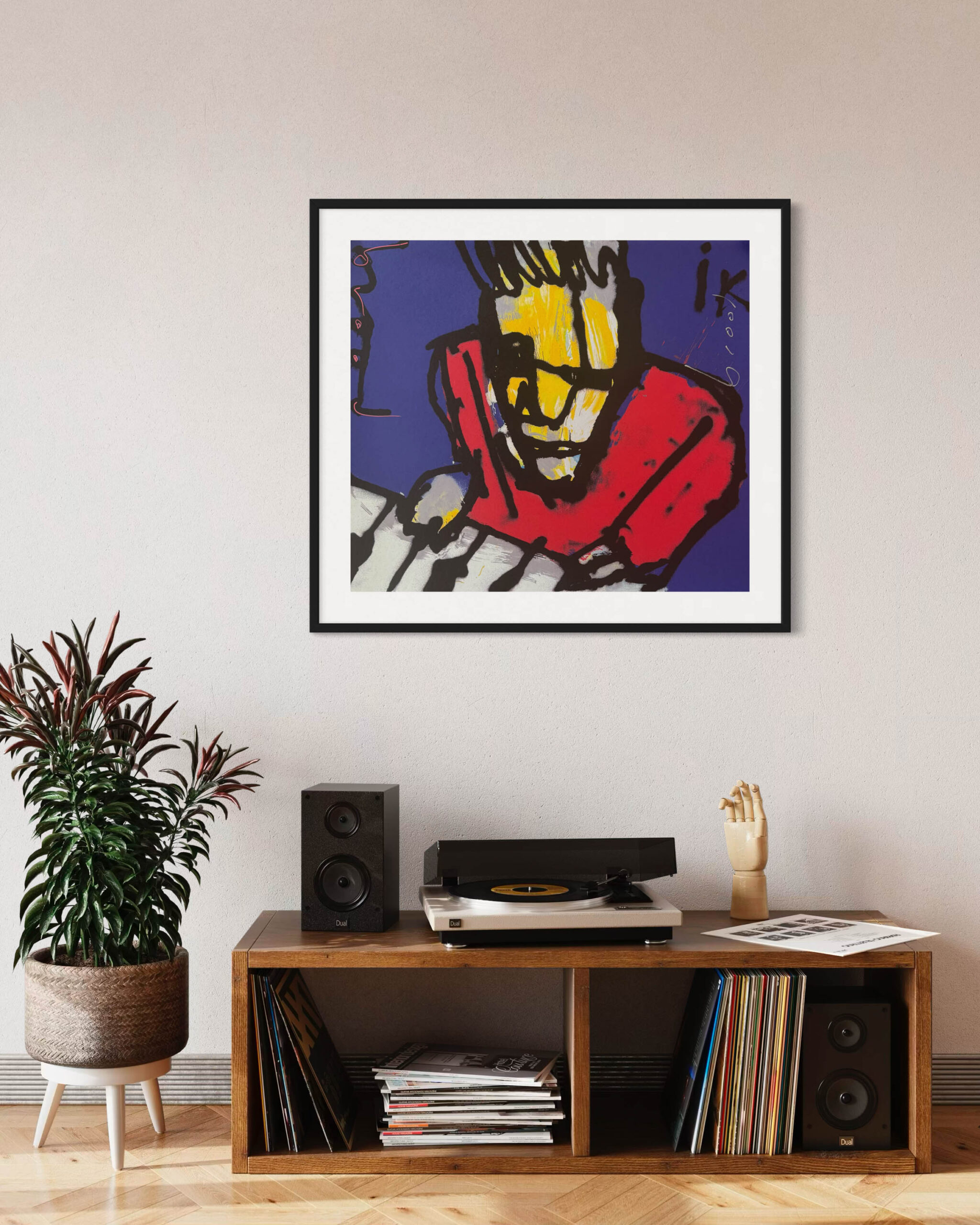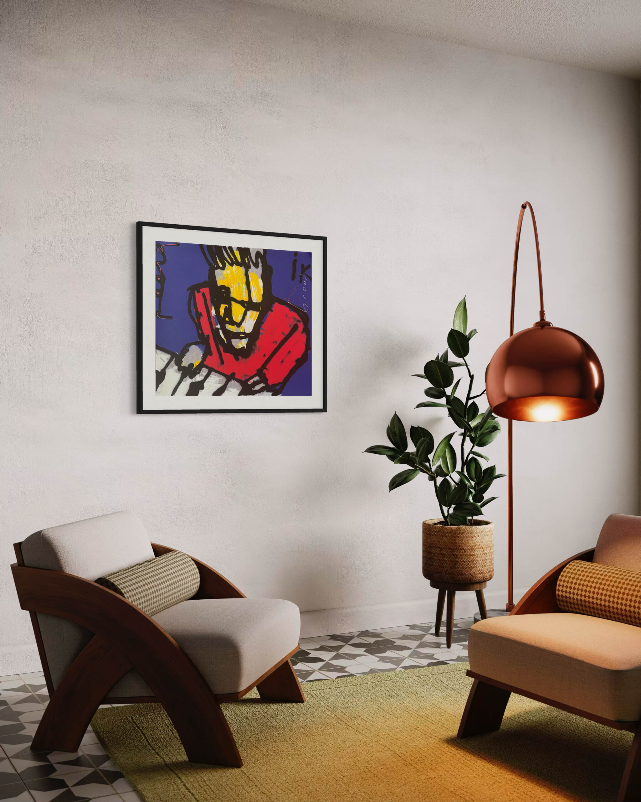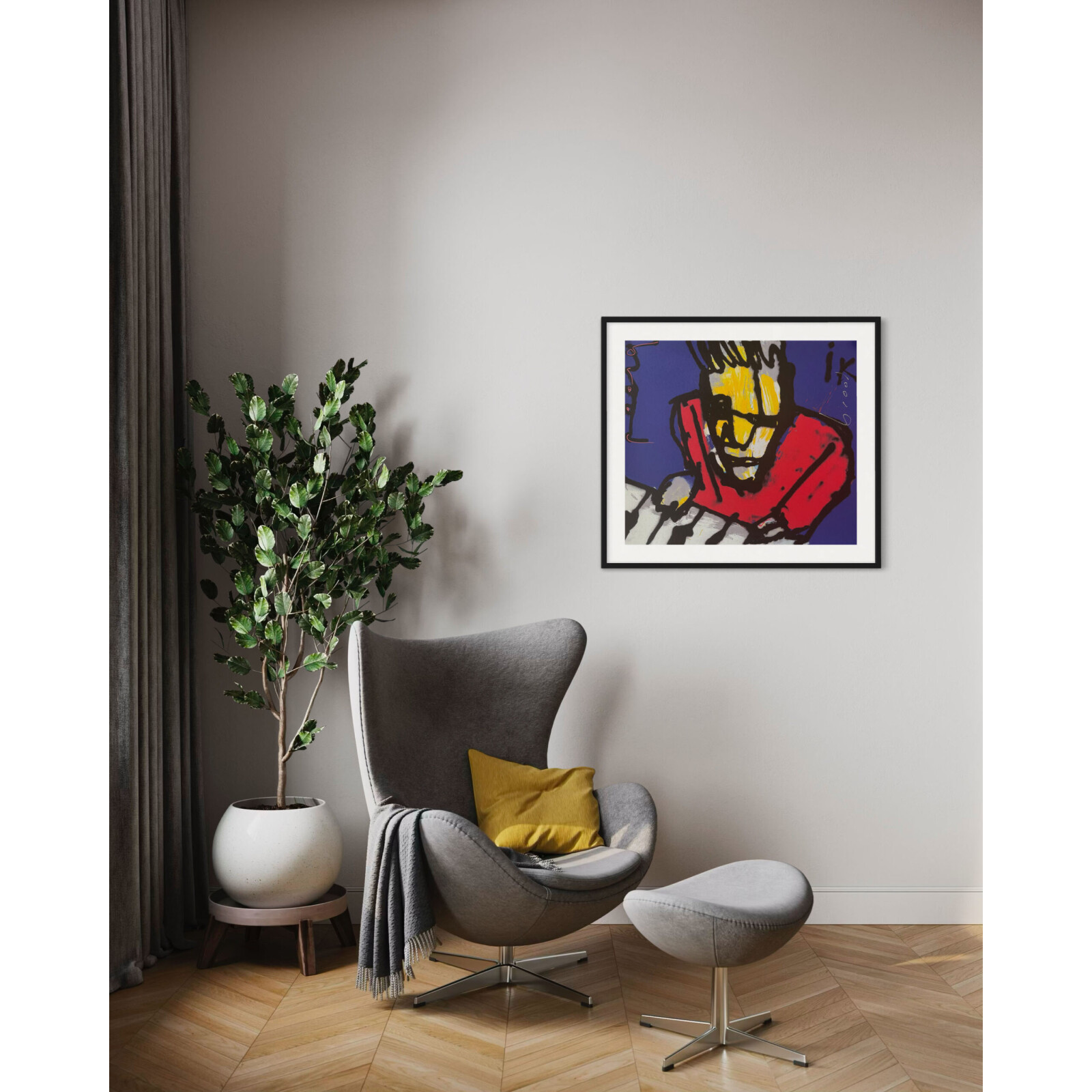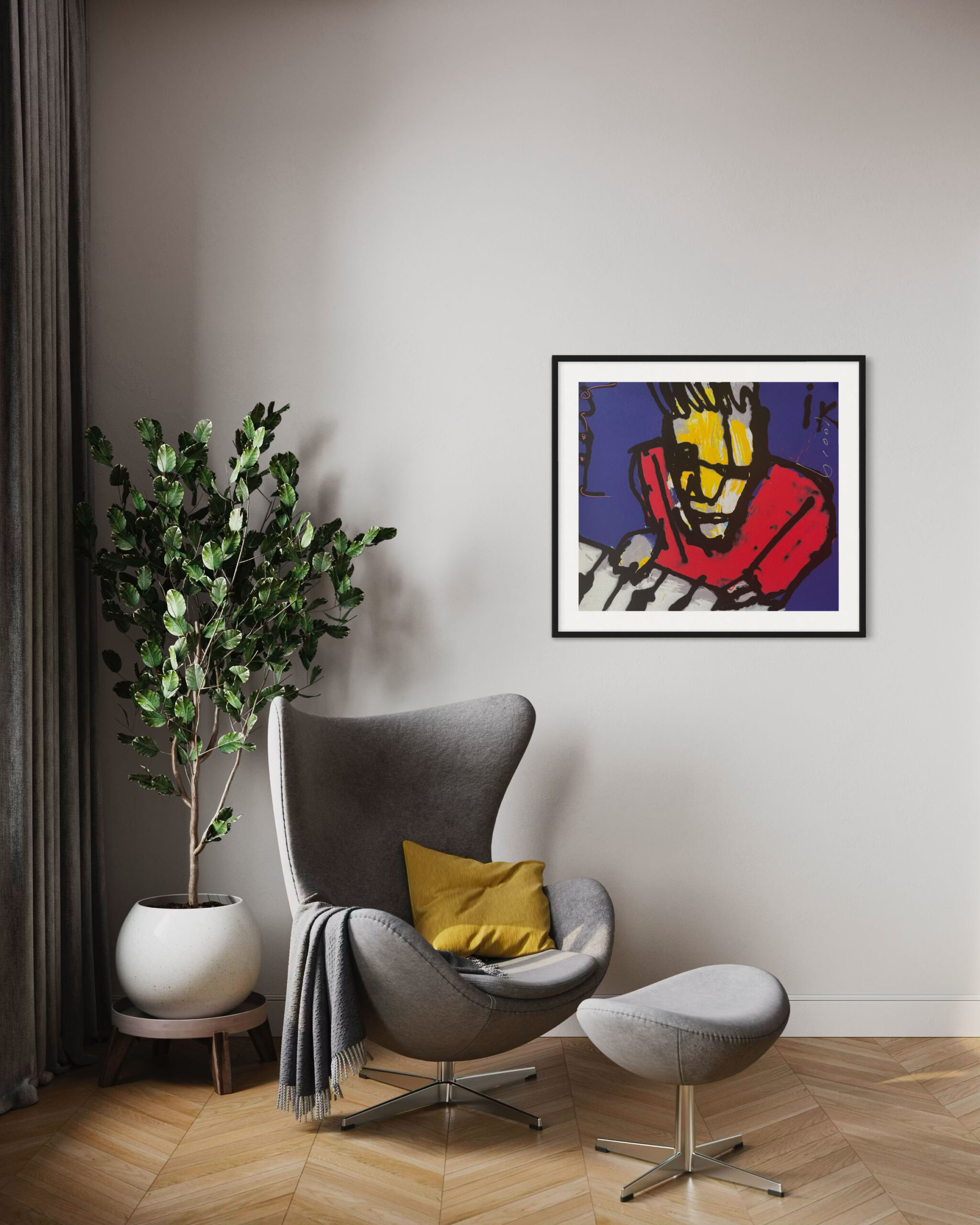 I ist ein beeindruckender Siebdruck des berühmten niederländischen Künstlers Herman Brood. Dieses Kunstwerk zeichnet sich durch leuchtende Primärfarben aus und ist ein nummeriertes und signiertes Exemplar mit Echtheitszertifikat. Der Siebdruck ist wunderschön in einem 2 cm breiten schwarzen Rahmen mit säurefreiem Passepartout und klarem Floatglas gerahmt und befindet sich in sehr gutem Zustand. Bevorzugen Sie eine andere Liste? Kein Problem. Lassen Sie sich in unserem hauseigenen Rahmengeschäft beraten. Wir haben mehr als 1.000 Profile.