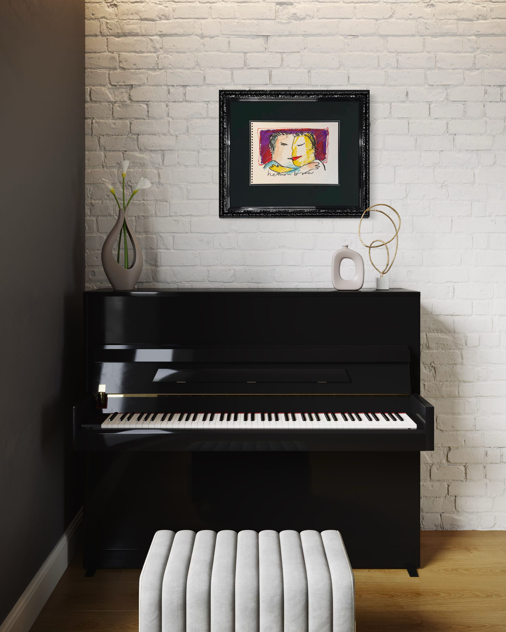 Dieses Kunstwerk verfügt über einen eleganten schwarzen Hochglanz-Ornamentrahmen mit einem säurefreien Passepartout. Die Größe von 61×72 cm beinhaltet den Rahmen. Um die Zeichnung bestmöglich zu schützen und zu bewahren, ist sie mit 99% UV-beständigem Museumsglas ausgestattet. Dadurch wird sichergestellt, dass die Farben und Details des Kunstwerkes erhalten bleiben. Würden Sie eine andere Liste bevorzugen? Kein Problem. In unserer Galerie haben wir mehr als 1.000 verschiedene Profile.