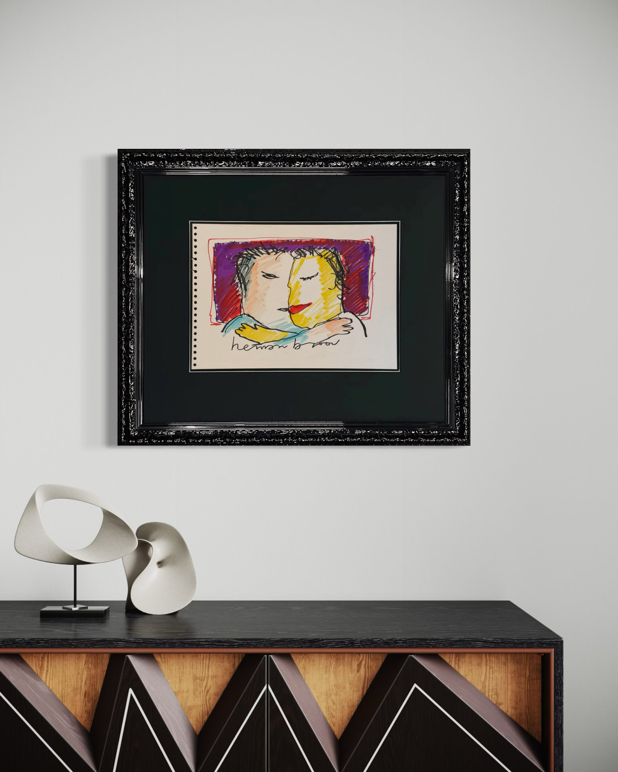 ‚Der Kuss‘ ist eine Originalzeichnung von Herman Brood. Im Gegensatz zu den Siebdrucken in limitierter Auflage ist dies ein einzigartiges Kunstwerk. Diese Zeichnung bietet Ihnen die seltene Gelegenheit, sich ein authentisches Stück der kreativen Welt von Brood nach Hause zu holen. Suchen Sie ein schönes Geschenk oder sind Sie selbst ein echter Herman Brood-Liebhaber? Mit ‚The Kiss‘ holen Sie sich ein einzigartiges Kunstwerk in Ihr Zuhause.