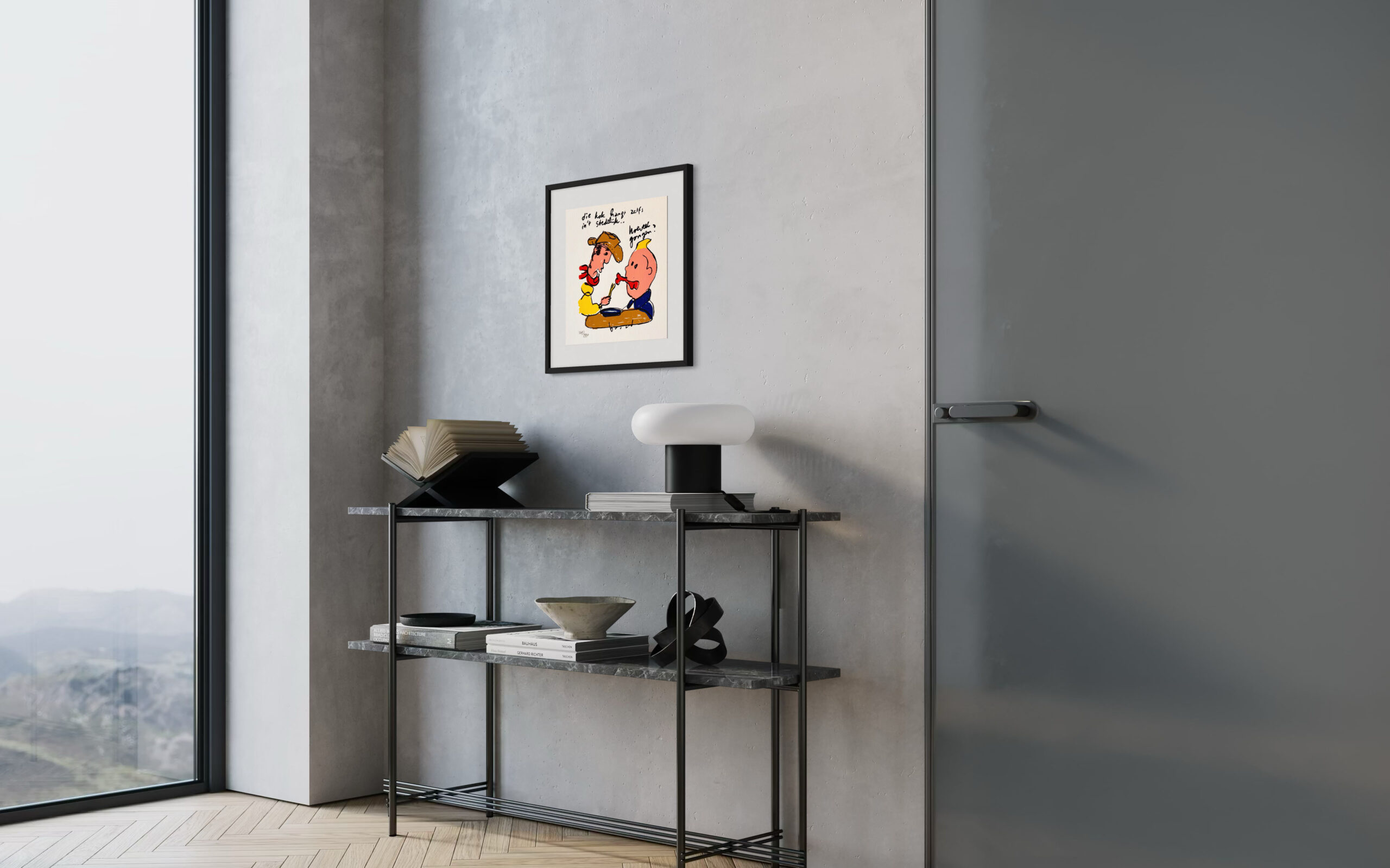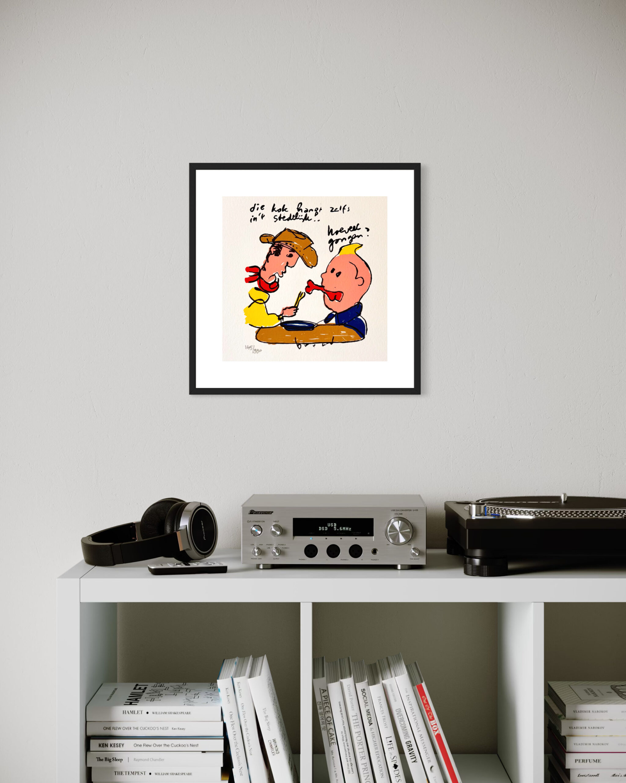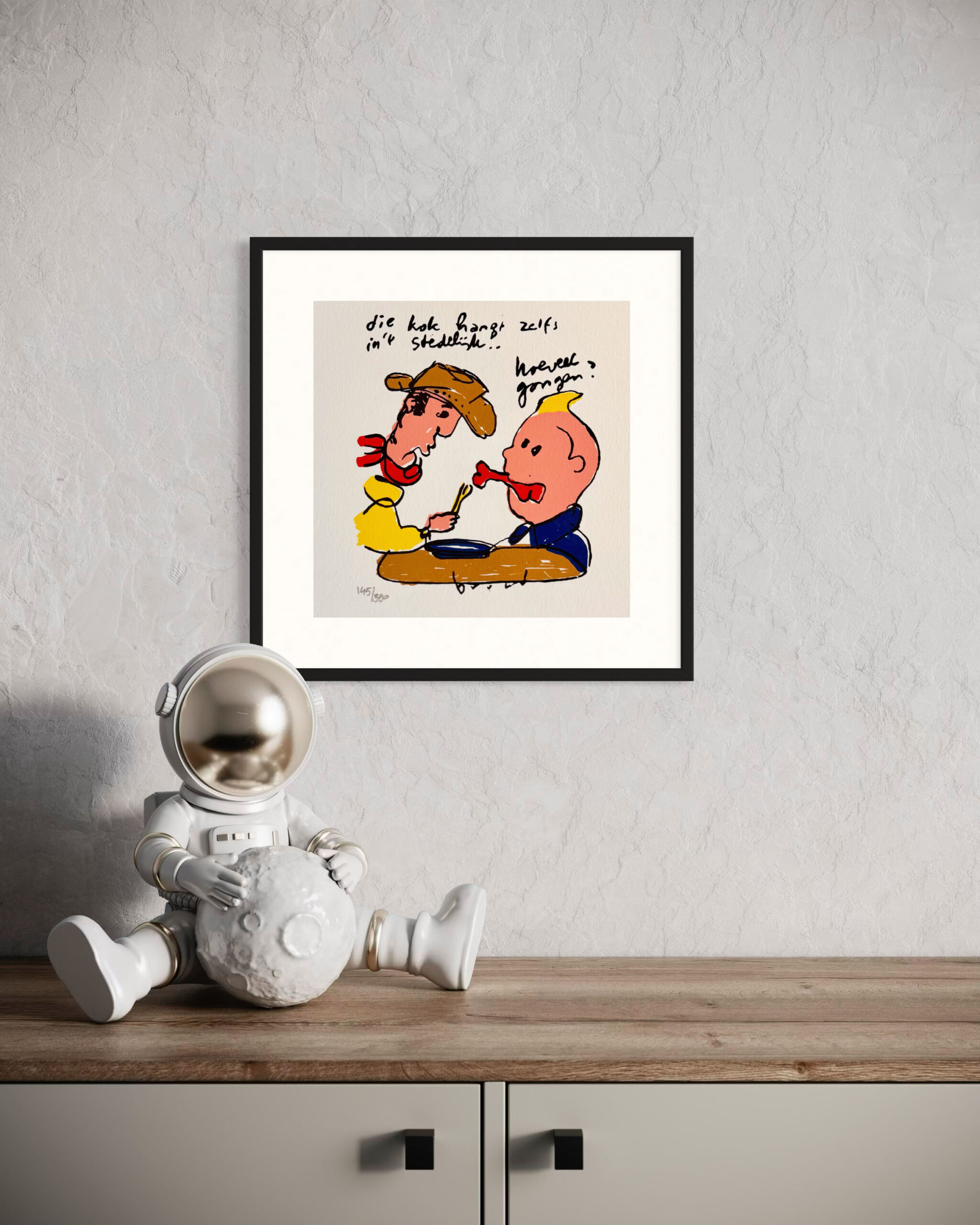 Schöner Siebdruck von Herman Brood. „Der Koch hängt sogar in der Stadt. - Wie viele Gänge?“ Dieses Kunstwerk strahlt den charakteristischen Stil und die Energie von Bread aus und ist perfekt für jeden Kunstliebhaber. Der Originalsiebdruck ist nummeriert und mit einer Signatur versehen. Die Auflage des Siebdrucks beträgt 350 Exemplare. Die Gesamtgröße beträgt 31×31 cm und das Kunstwerk ist in einem ausgezeichneten Zustand. „Die Kok Hangs Even In The Stedelijk“ ist in unserer Galerie vorrätig und kann auch online bestellt werden. Das perfekte Geschenk für jeden Brot- und Kunstliebhaber! Versandkosten in den Niederlanden €8,95 (andere Länder: die Versandkosten werden während des Bestellvorgangs angezeigt). Lieferzeit 1-3 Arbeitstage.
