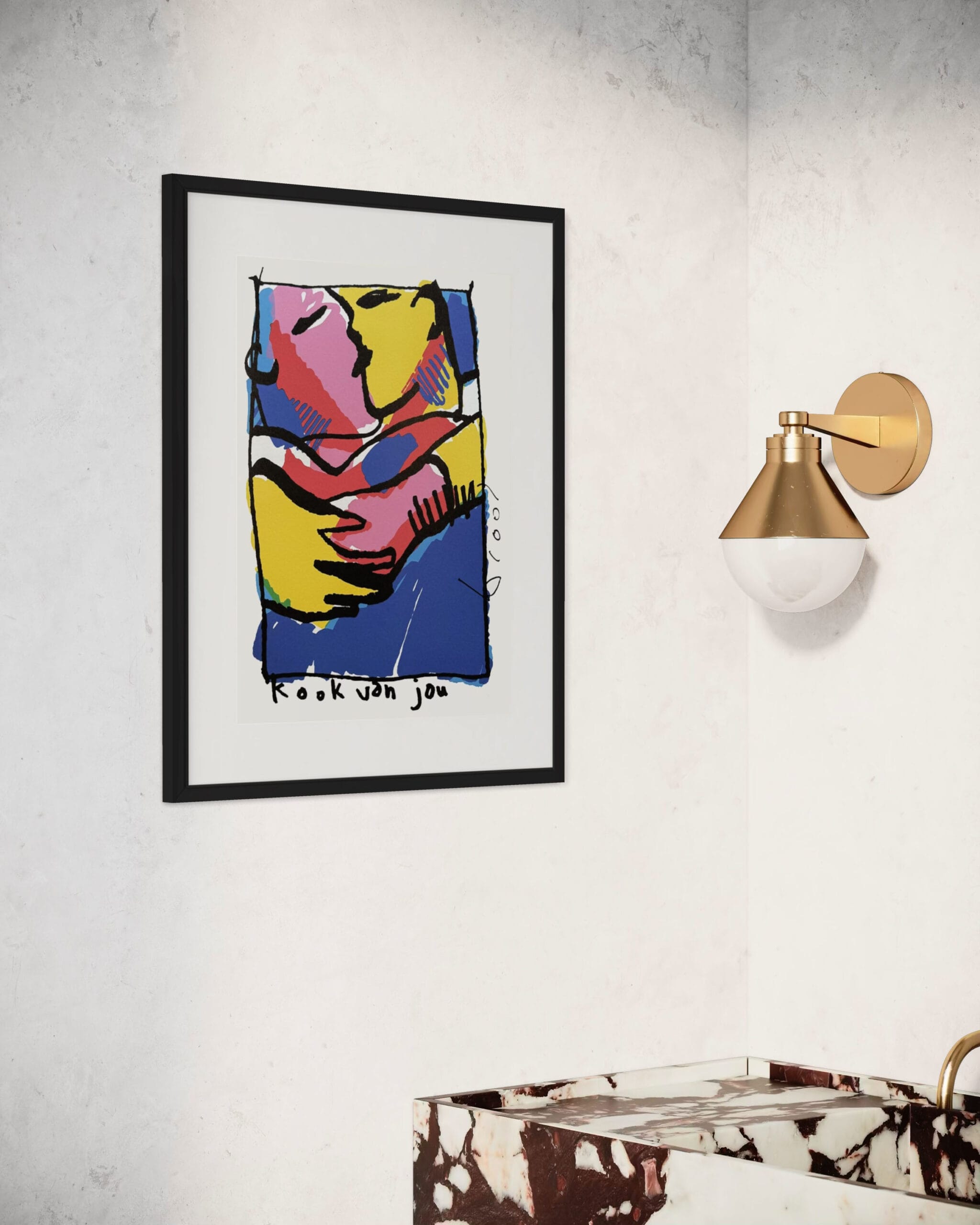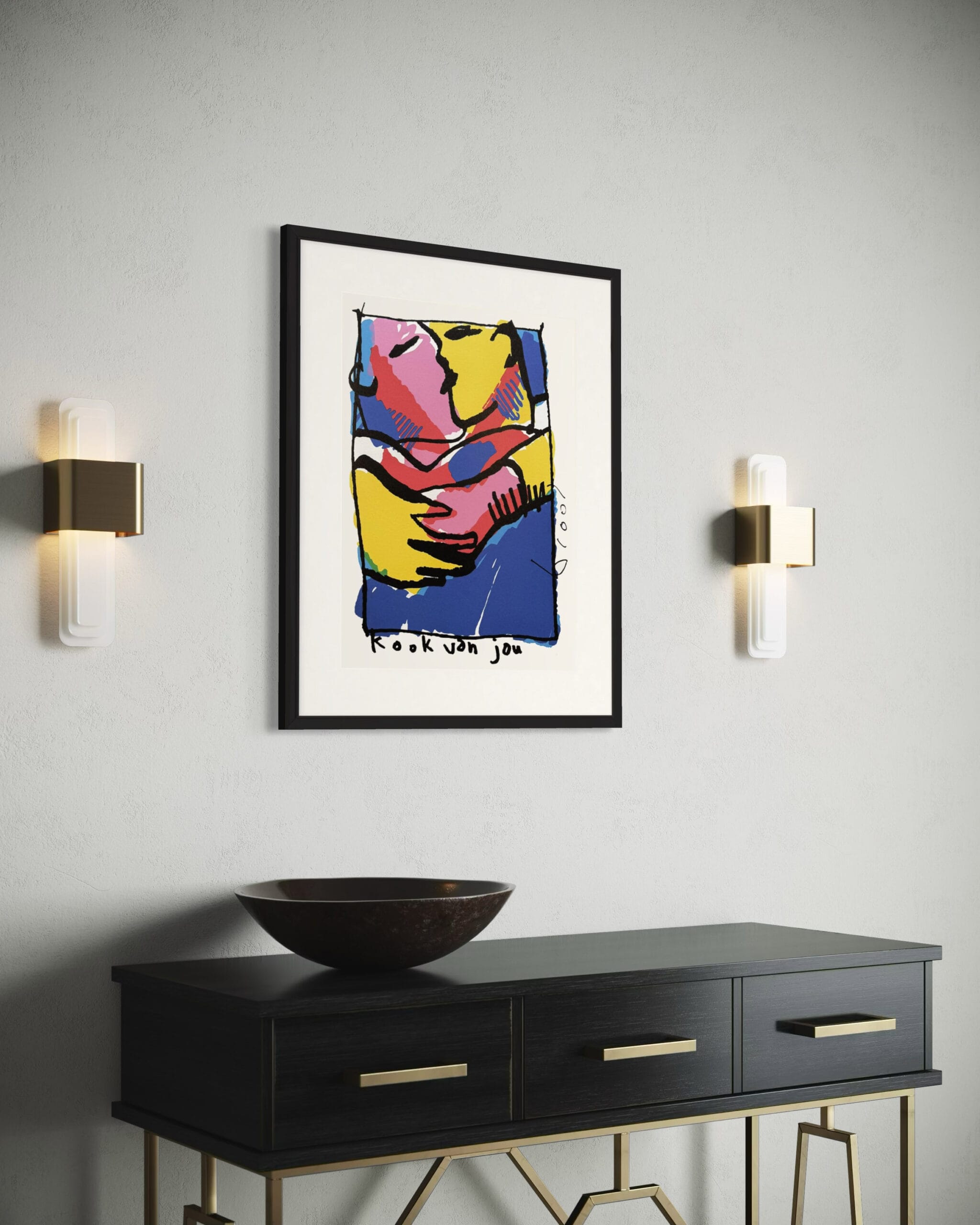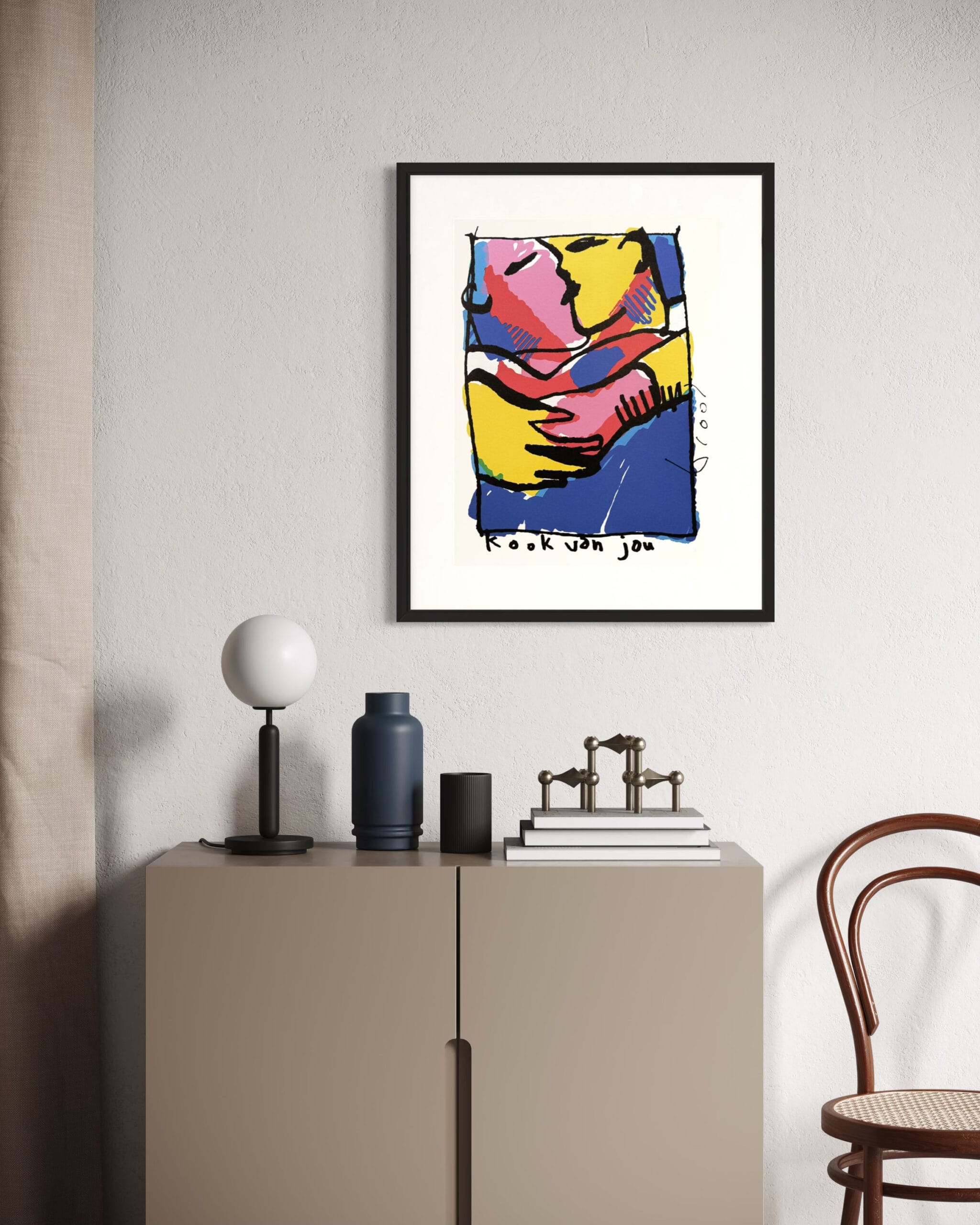 Der Siebdruck Kook van Jou ist auch in unserer Kunstausleihe und kann auch online erworben werden. Die Lieferzeit beträgt 1-3 Arbeitstage. Möchten Sie sich die Kunstwerke zuerst in unserer Galerie ansehen? Sie sind herzlich willkommen. Das Kunstwerk wird mit einem Echtheitszertifikat geliefert.