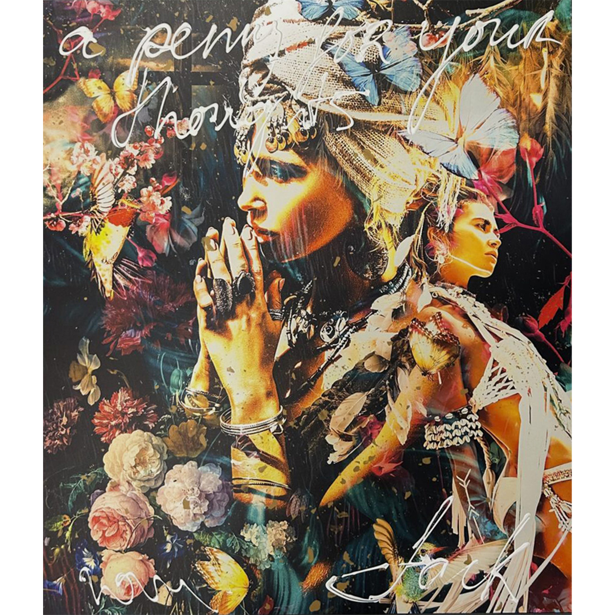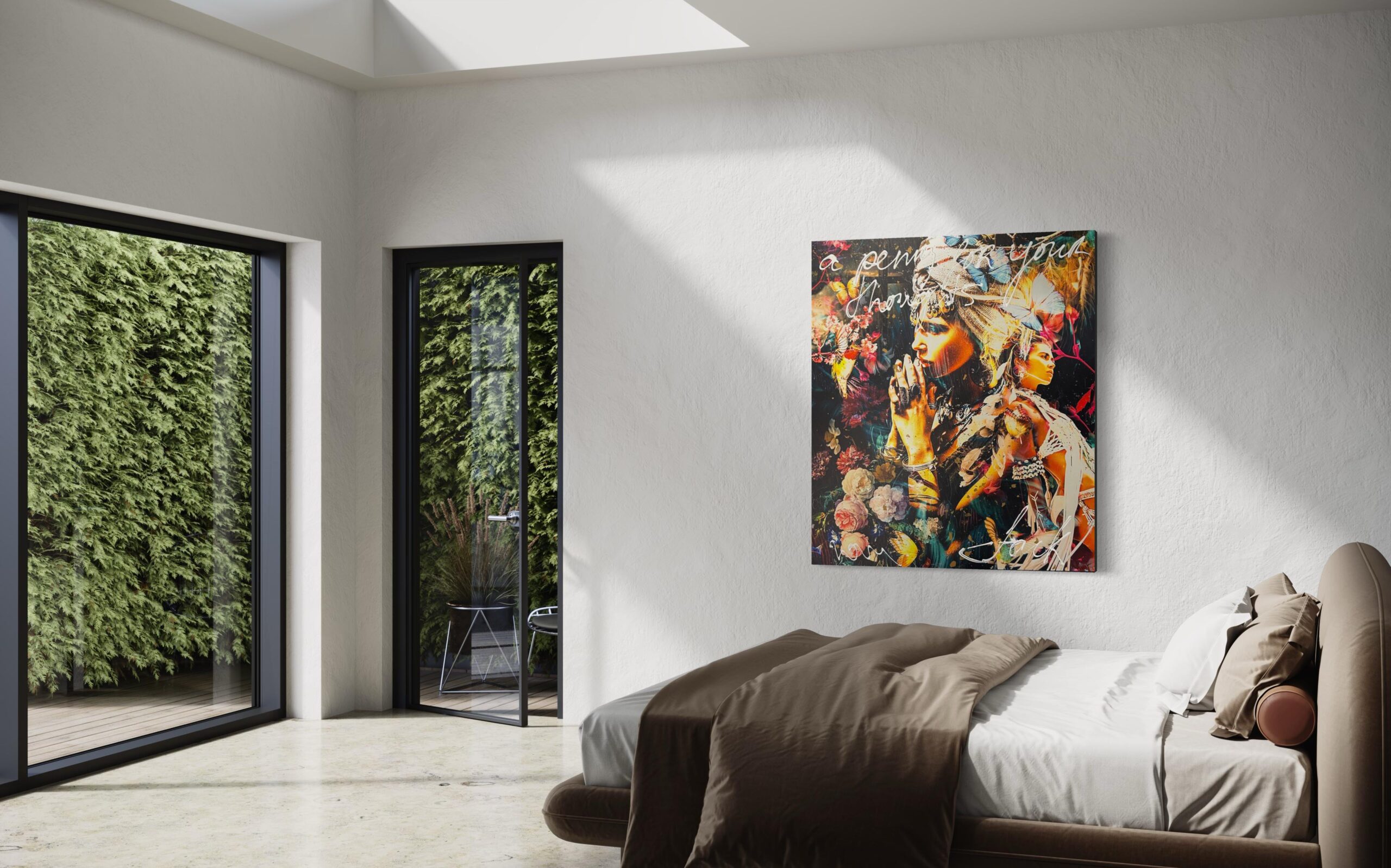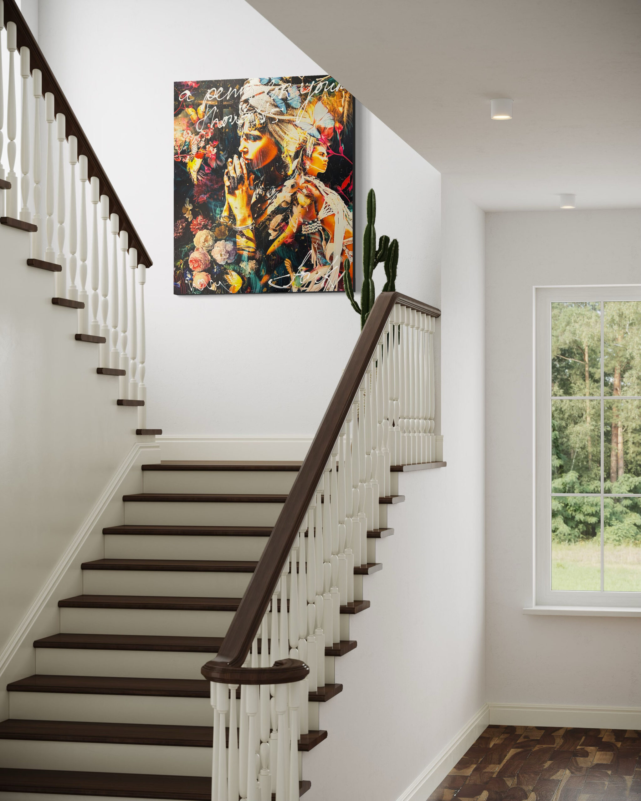 Diese Redewendung wird oft unter Familienangehörigen und Freunden verwendet, wenn jemand darauf drängt, zu wissen, wo der andere in seinen Gedanken versunken ist. Was hat der Protagonist dieses Kunstwerks im Sinn? Die Kombination von Fototechniken und Acryl, veredelt mit einer glänzenden Schicht aus Epoxidharz, sorgt für einen stilvollen, schicken Look. Es ist auf Dibond gefertigt und mit einem stabilen, 5 cm dicken Holzrahmen versehen, dessen Seiten durchgemalt sind. Dadurch ist das Kunstwerk sofort bereit, an die Wand gehängt zu werden.