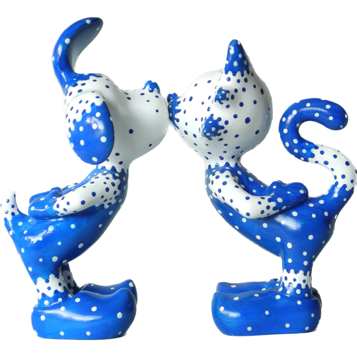 Entdecken Sie Lot, eine wunderschöne figurative Kunstskulptur des talentierten Künstlers Jacky Zegers. Dieser blau-weiß gesprenkelte Hund trägt niedliche Nuggets und kann entweder separat oder zusammen mit der Katze Mina platziert werden. Das Lot ist ein echter Blickfang und eine wertvolle Ergänzung für jede Kunstsammlung.