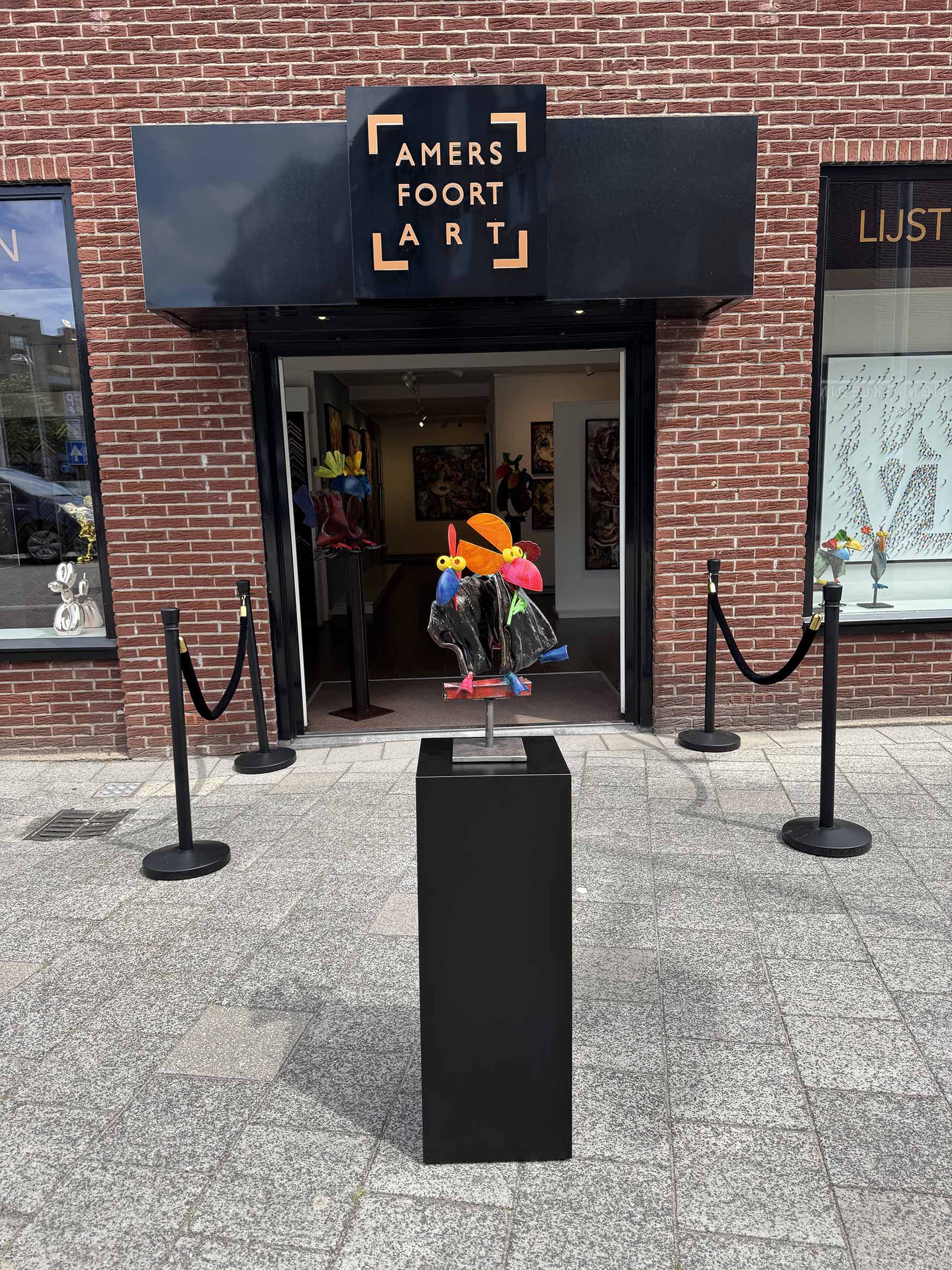 Das verwitterte, oxidierte Eisen dieser Skulptur bildet einen scharfen Kontrast zu den vielen leuchtenden Farben, wodurch das Kunstwerk sofort die Aufmerksamkeit auf sich zieht. Ridderbuschs Arbeiten faszinieren viele Menschen und eignen sich perfekt als Kunst im Freien. Nicht nur wegen seiner Größe, sondern auch wegen seines ’natürlichen‘ Charakters: das rostige Braun des Eisens und die frischen, fröhlichen Farben der Fantasietiere. In einem Garten oder Außenbereich, aber natürlich auch in Ihrem Interieur, sind Ridderbusch-Skulpturen ein echter Blickfang, der immer wieder das Auge anzieht.