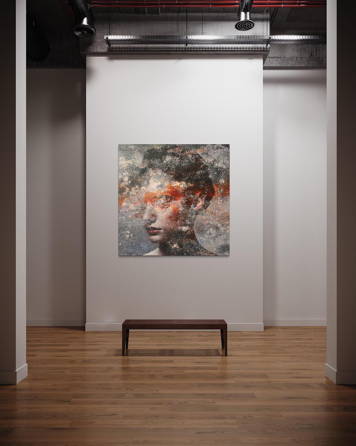 Karin Vermeer: "Meine Arbeit ist eine Mischung aus verschiedenen Fotografien, Bildern und Farben, die ich am Computer und auf der Leinwand zu einer neuen Darstellung kombiniere. Mein Lieblingsthema ist das weibliche Gesicht. Ich verwende Fotos von Menschen, alten Mauern, Grunge-Postern und allen möglichen anderen interessanten Motiven, um ein neues Bild zu schaffen. Sobald der digitale Teil fertig ist, wird das Bild gedruckt und ich beginne, es zu übermalen. Ich kreiere das Kunstwerk mit vielen Schichten von Texturen, Gelen und Farbe. Auf diese Weise versuche ich, das digitale Bild greifbar zu machen. Bei meiner Arbeit geht es nicht so sehr um Erklärungen und Konzepte; sie ist ein Spiel und alles dreht sich um das Bild. Normalerweise beginne ich mit einem leeren Bild, aber wenn ich mir Bilder ansehe, die mich interessieren, und sie mische, entsteht langsam ein neues Bild. Alle Werke werden auf Anfrage in jeder Größe angefertigt. Die meisten dieser Werke sind eine Mischung aus Druck, Farbe, Korngel, schwerem Gel und mattem oder glänzendem Lack. Die Werke sind handgefertigt, individuell leicht unterschiedlich und in einer Auflage von bis zu 25 Stück, nummeriert und signiert."