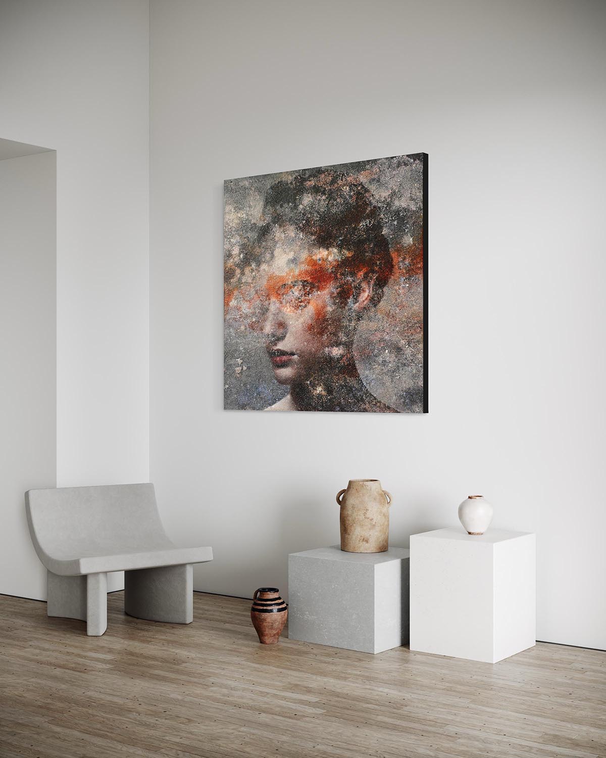 Achat ist ein atemberaubendes Kunstwerk von Karin Vermeer, das fotografische Techniken und Acryl auf Leinen kombiniert. Die Arbeit wird zusätzlich mit verschiedenen Arten von Strukturpasten angereichert, was zu einem atemberaubenden Aussehen führt. Das Kunstwerk ist auf hochwertigem Leinen aufgespannt und an den Seiten bemalt. So ist es sofort bereit, an Ihrer Wand zu hängen!