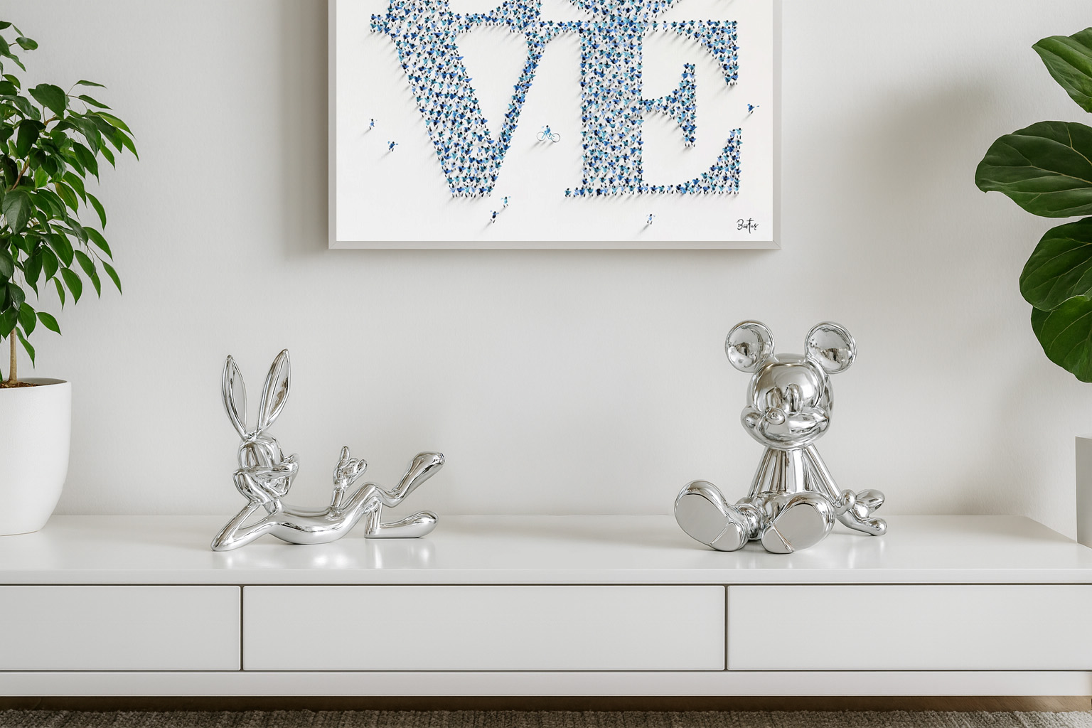 Entdecken Sie die faszinierende Welt von Kay Pears mit der erstaunlichen Skulptur ‚Chilling Mouse Silver‘. Die wunderschön gearbeitete Skulptur eines liegenden Bugs Bunny ist aus hochwertigem Polystone gefertigt und gehört zu einer limitierten Auflage von nur 29 Exemplaren weltweit. Die Statue ist 22 cm hoch, 22 cm breit und 22 cm tief. Ein Muss für Kunstliebhaber und Sammler, die etwas Besonderes suchen.