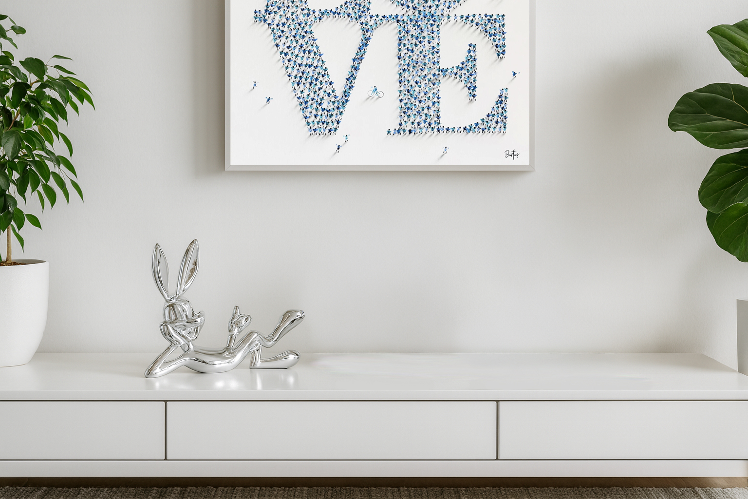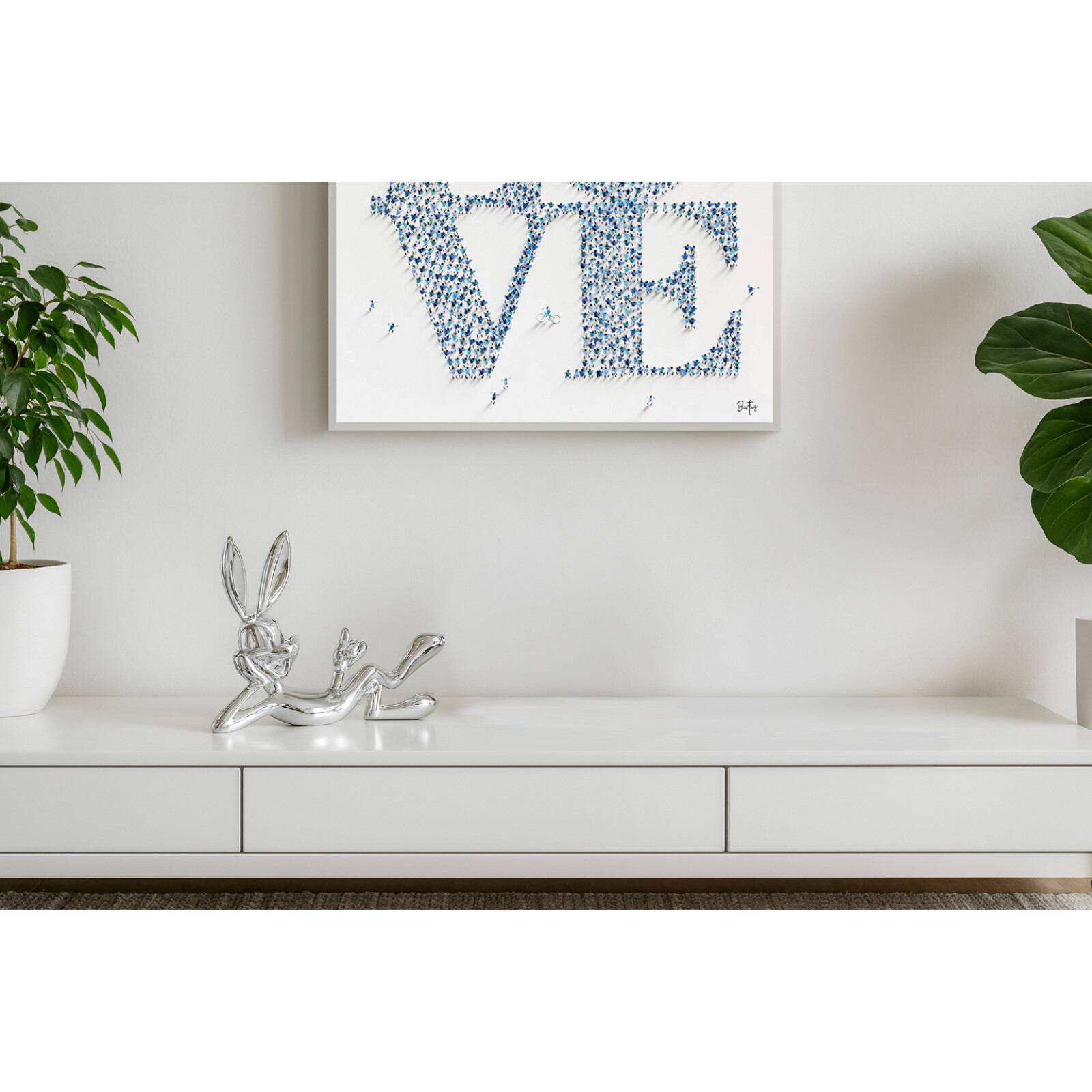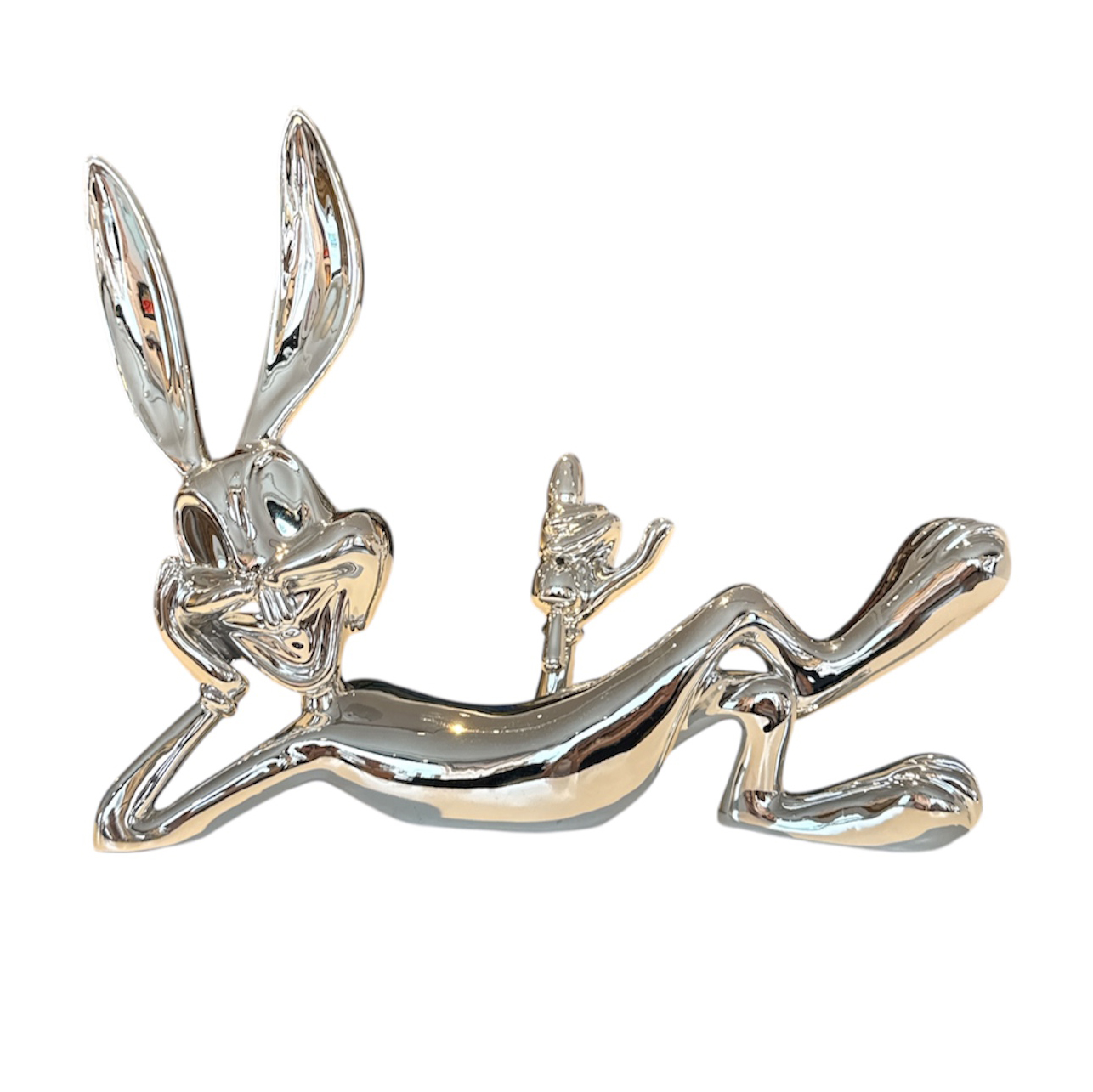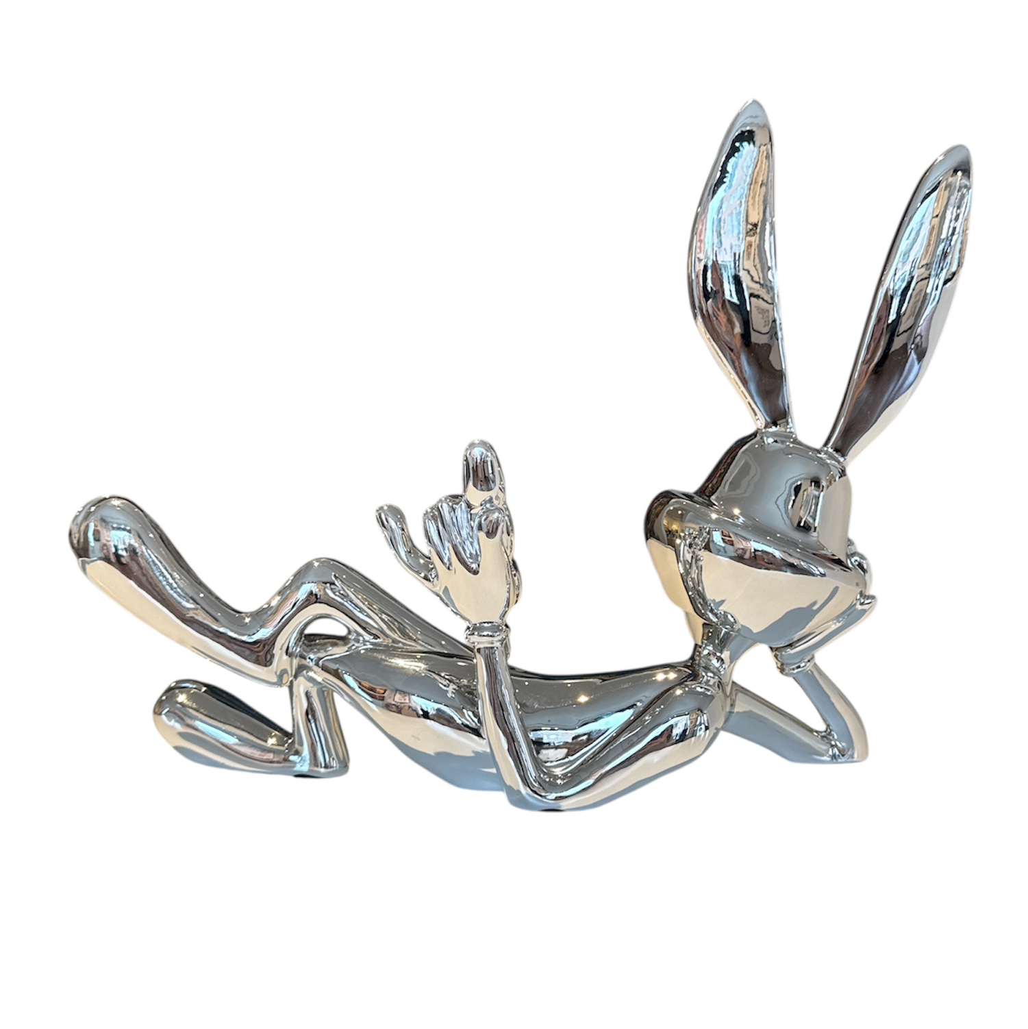 Die Lazy Bunny Statue ist aus verchromtem Polystone gefertigt, der eine dauerhafte und hochwertige Verarbeitung gewährleistet. Die verchromte Oberfläche verleiht der Skulptur einen modernen und futuristischen Look, der sich perfekt in jedes Interieur einfügt.