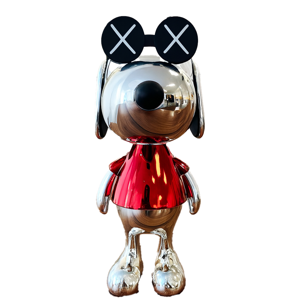 Die rote Snoopy-Statue ist aus hochwertigem Polystone gefertigt, der eine dauerhafte und hochwertige Verarbeitung gewährleistet. Die verchromte Oberfläche verleiht der Skulptur einen modernen und futuristischen Look, der sich perfekt in jedes Interieur einfügt.