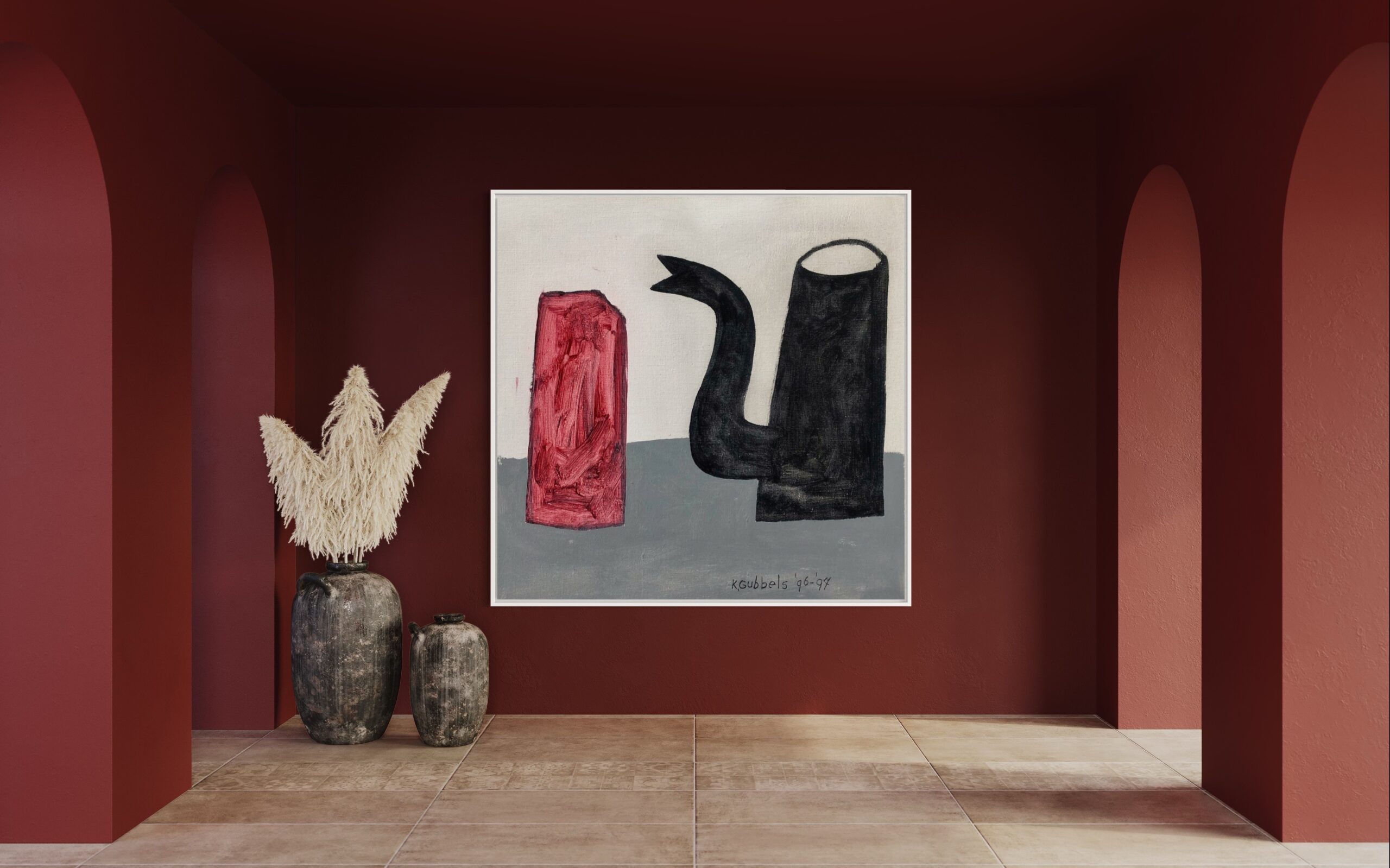 Klaas Gubbels ist für seine Stillleben bekannt geworden, die hauptsächlich Tische, Stühle und Kaffeekannen zeigen. Er verwendet häufiger die Kombination von Worten und visueller Kunst.