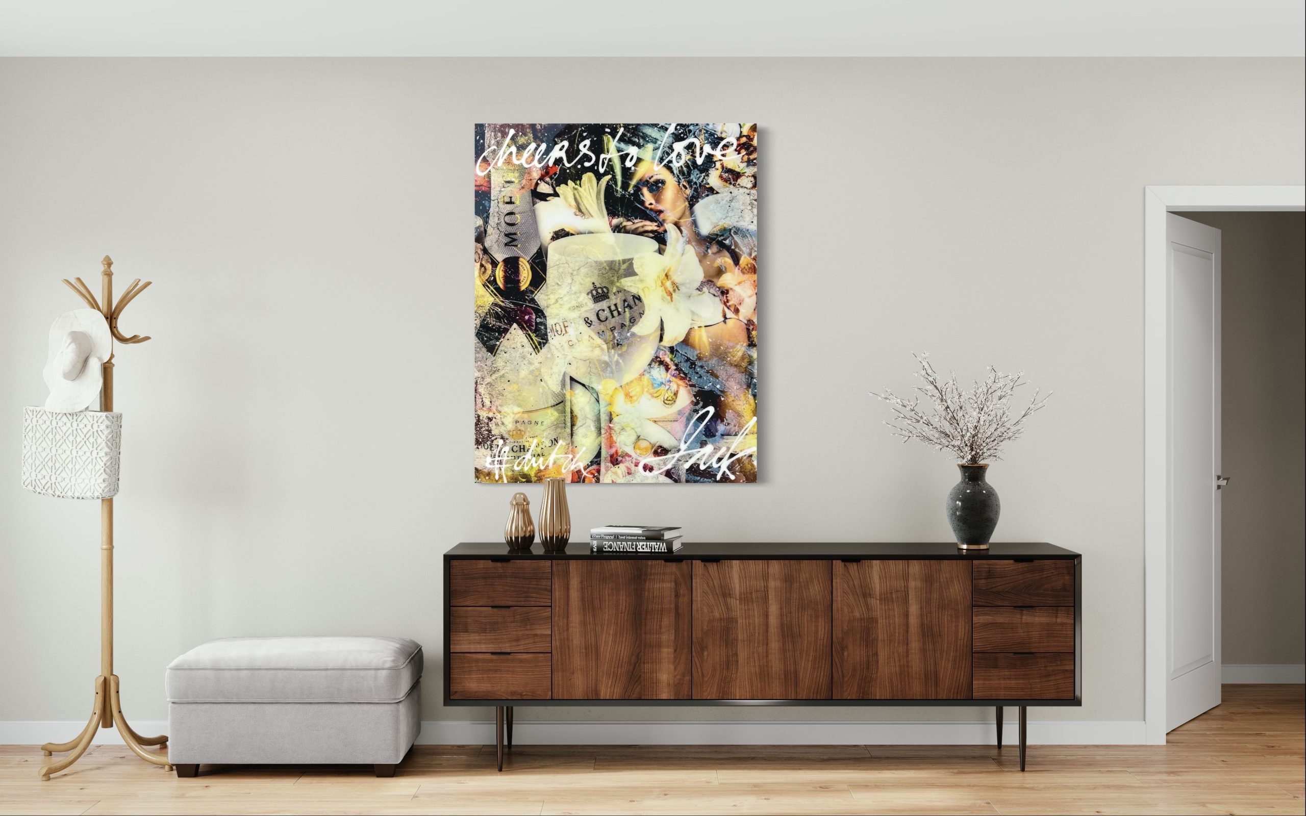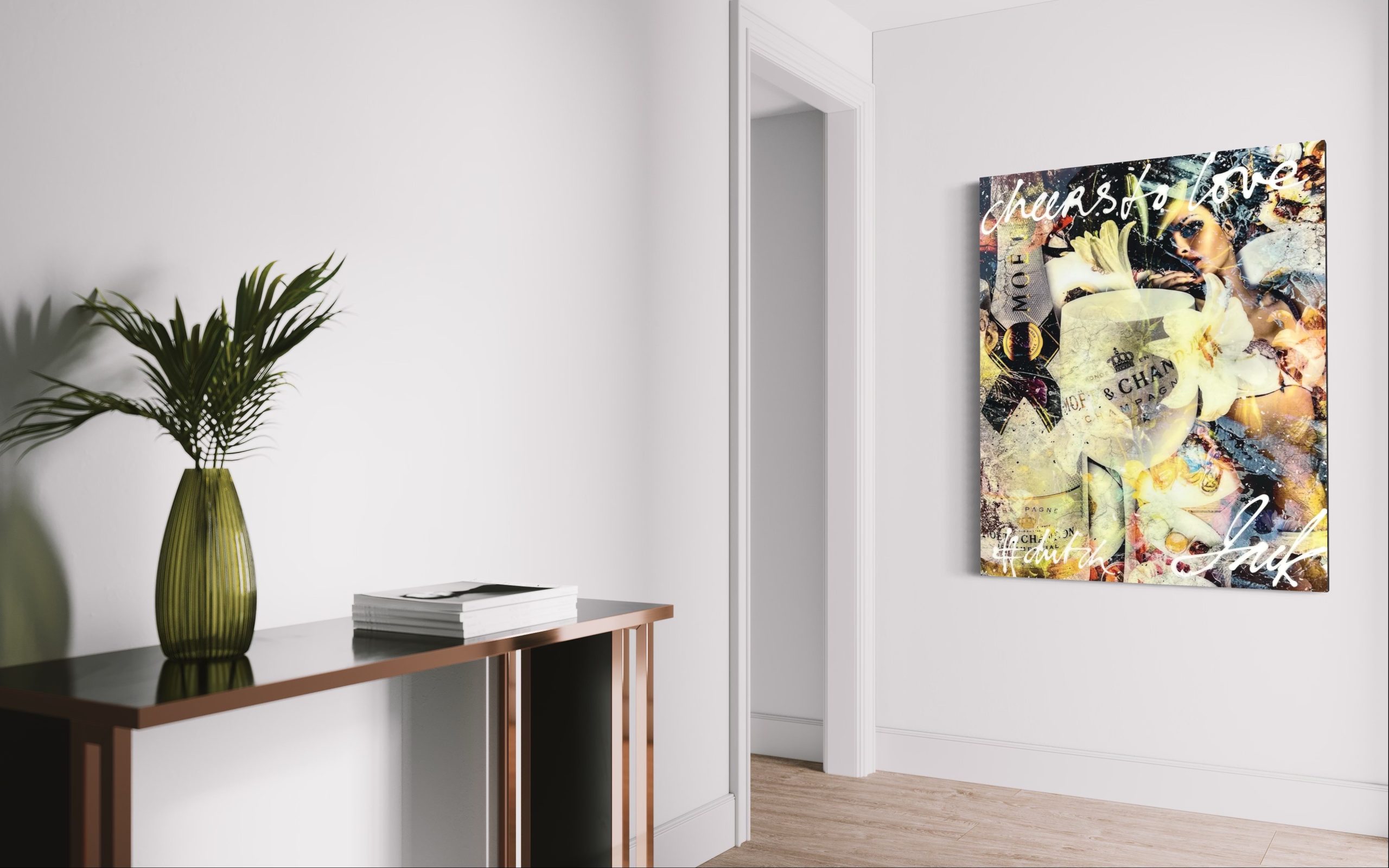 Wir lieben Champagner! Sind Sie auch ein Liebhaber? Dann ist ‚Cheers To Love‘ wirklich ein Kunstwerk für Sie! Diese besondere Kombination aus Fotografie, Acryl und Collagetechniken ist eine Bereicherung für jedes Interieur.