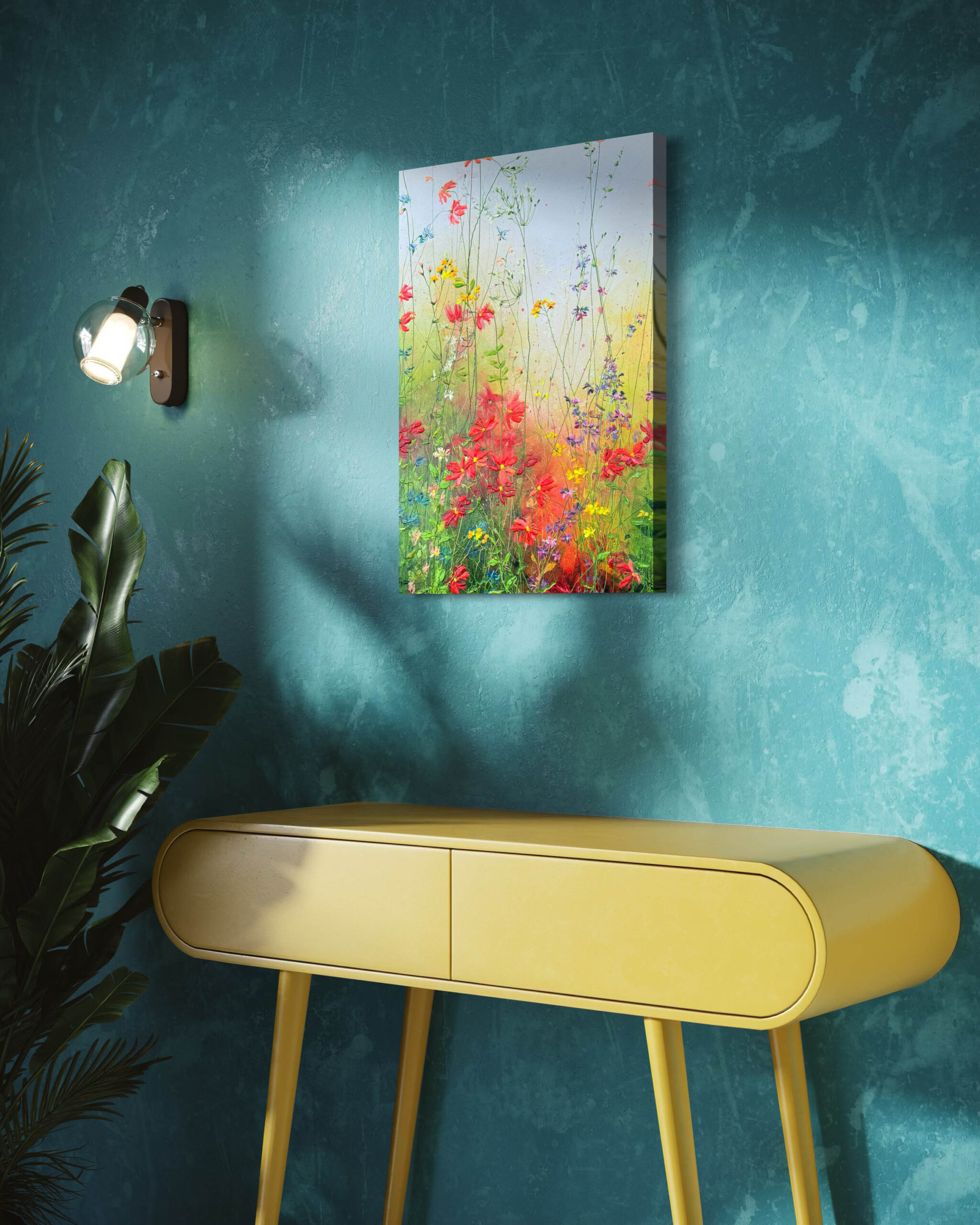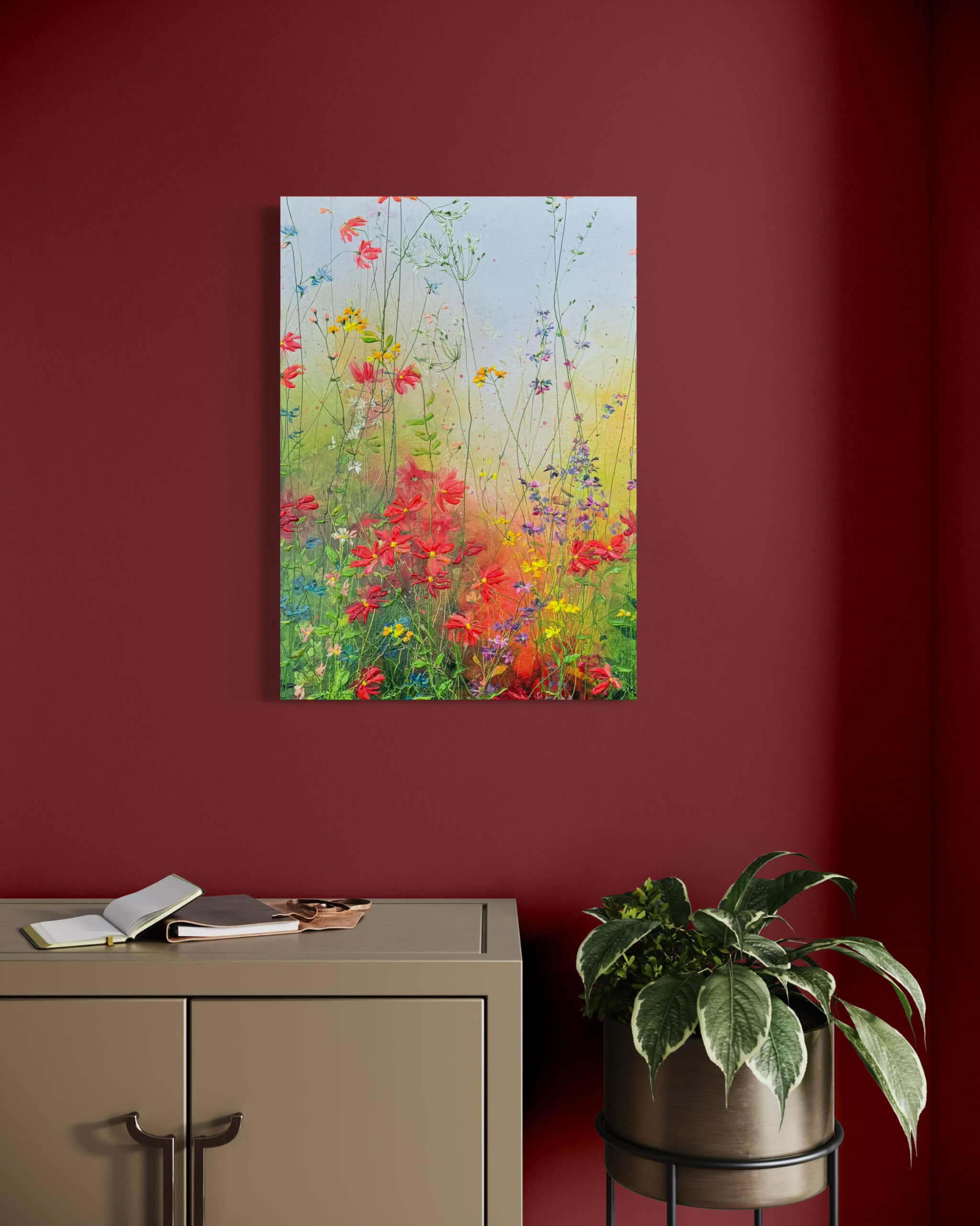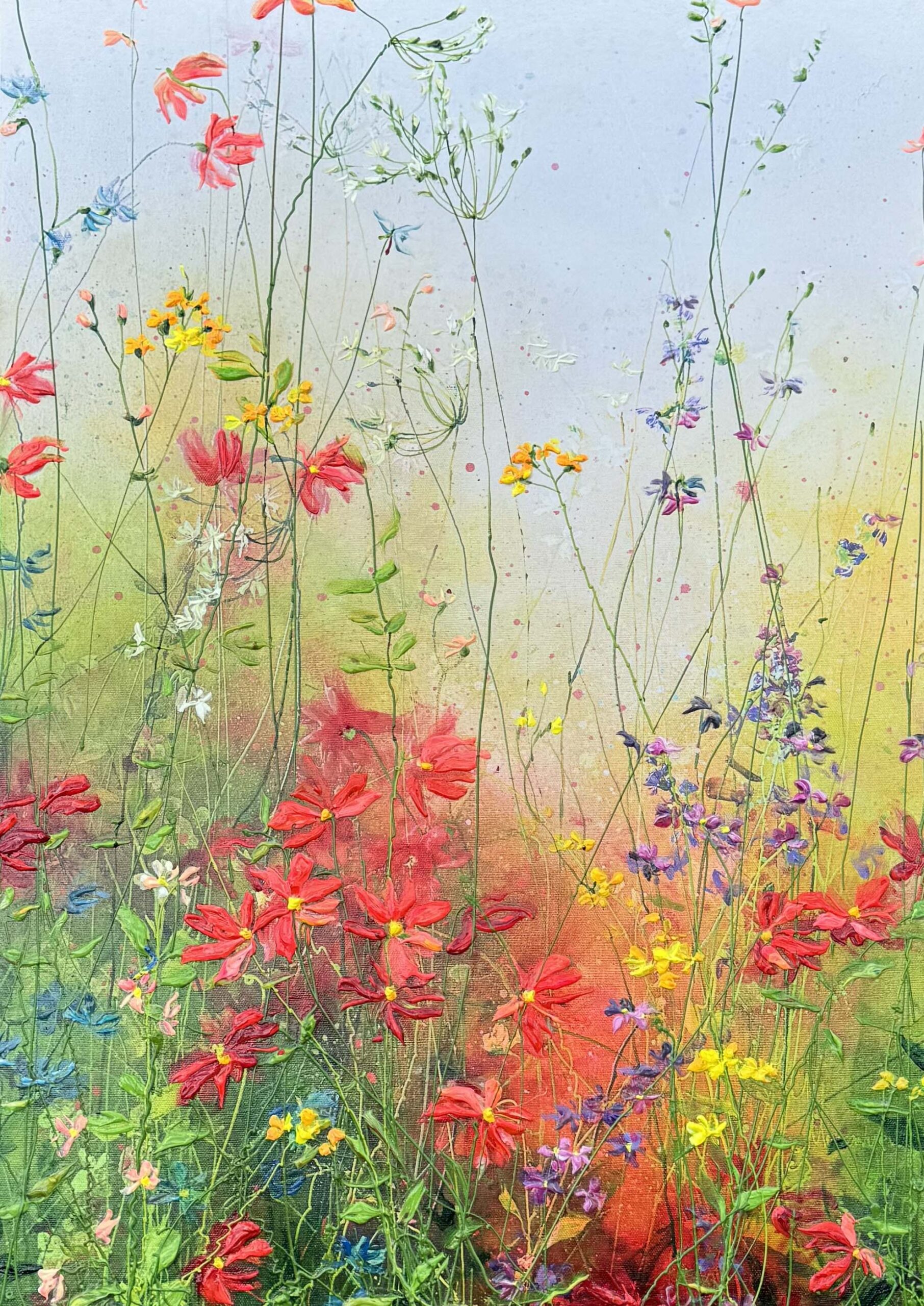 Ihre Bilder fallen sofort durch ihre frischen und fröhlichen Farben auf. Yulia arbeitet in einem abstrakten Stil, indem sie Blumenknospen mit dicken Farbschichten auf die Leinwand aufträgt, aber sie schafft auch detailliertere Werke. Die schönen Farbübergänge im Hintergrund vermitteln ein positives und warmes Gefühl. Ihre Arbeit entwickelt sich ständig in Richtung eines moderneren und abstrakteren Stils, obwohl klassische Elemente immer noch zu erkennen sind. Die Textur der Blumen verleiht ihren Kunstwerken eine zusätzliche Dimension, die auf Fotos nur schwer zu erfassen ist.