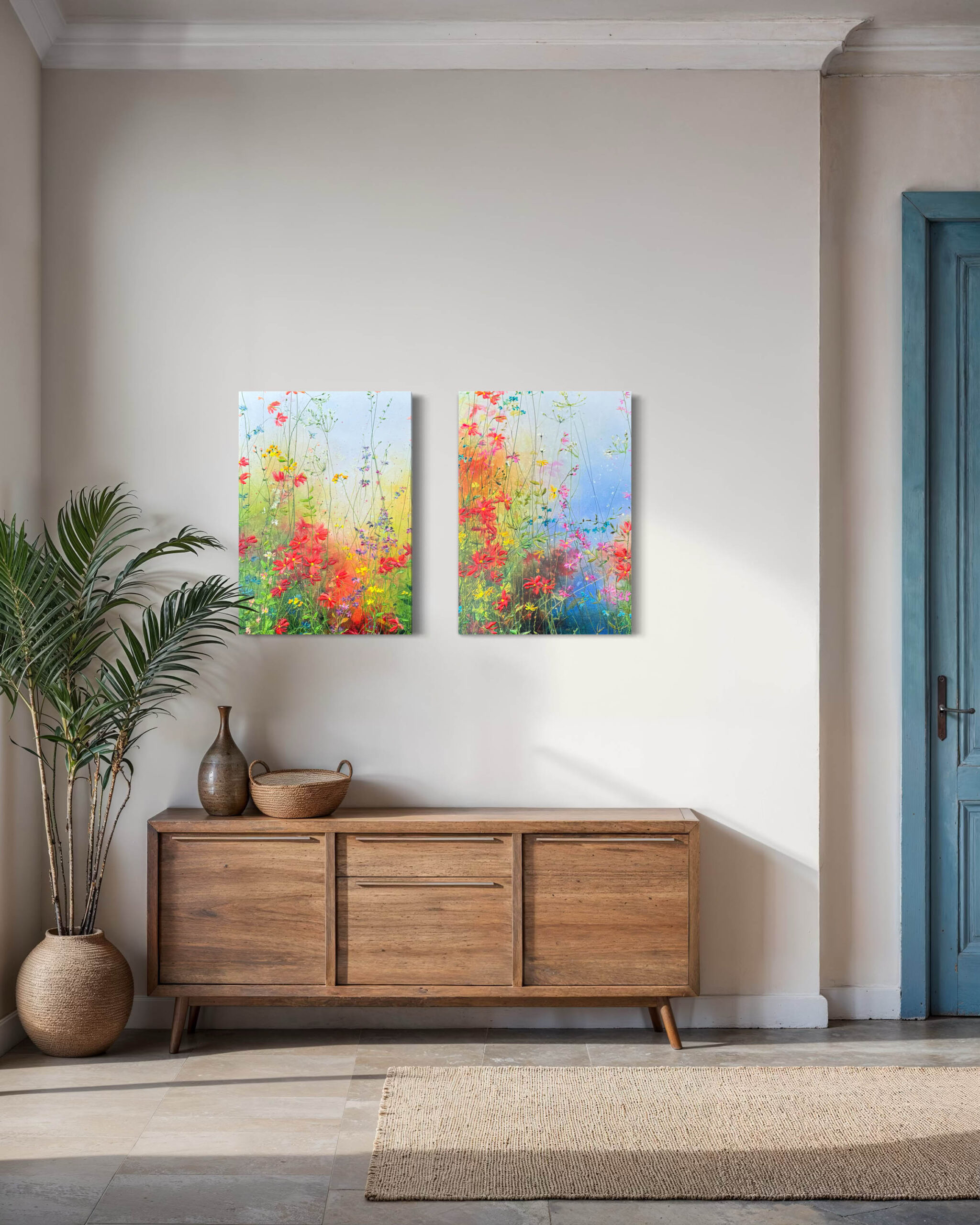 Ihre Bilder fallen sofort durch ihre frischen und fröhlichen Farben auf. Yulia arbeitet in einem abstrakten Stil, indem sie Blumenknospen mit dicken Farbschichten auf die Leinwand aufträgt, aber sie schafft auch detailliertere Werke. Die schönen Farbübergänge im Hintergrund vermitteln ein positives und warmes Gefühl. Ihre Arbeit entwickelt sich ständig in Richtung eines moderneren und abstrakteren Stils, obwohl klassische Elemente immer noch zu erkennen sind. Die Textur der Blumen verleiht ihren Kunstwerken eine zusätzliche Dimension, die auf Fotos nur schwer zu erfassen ist.